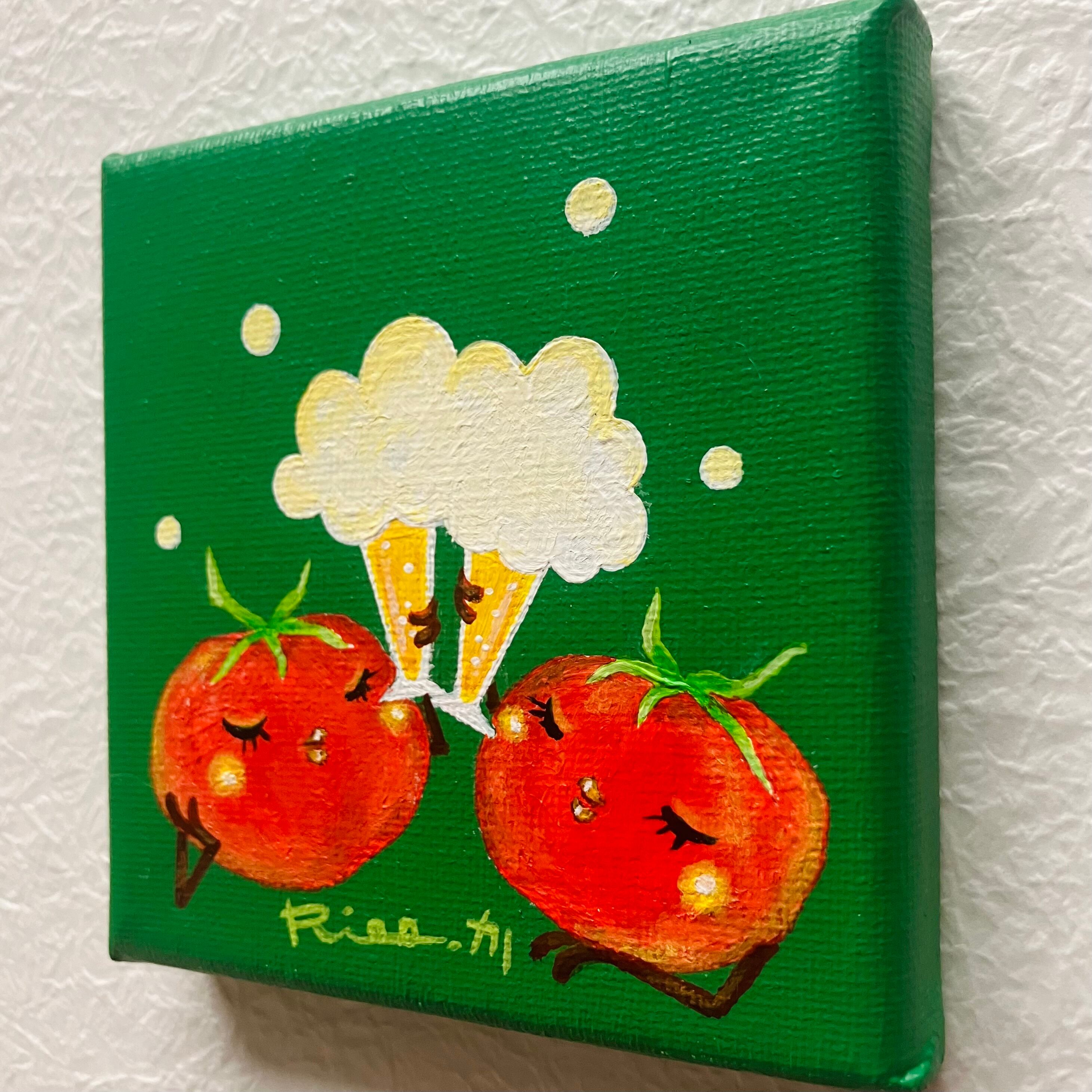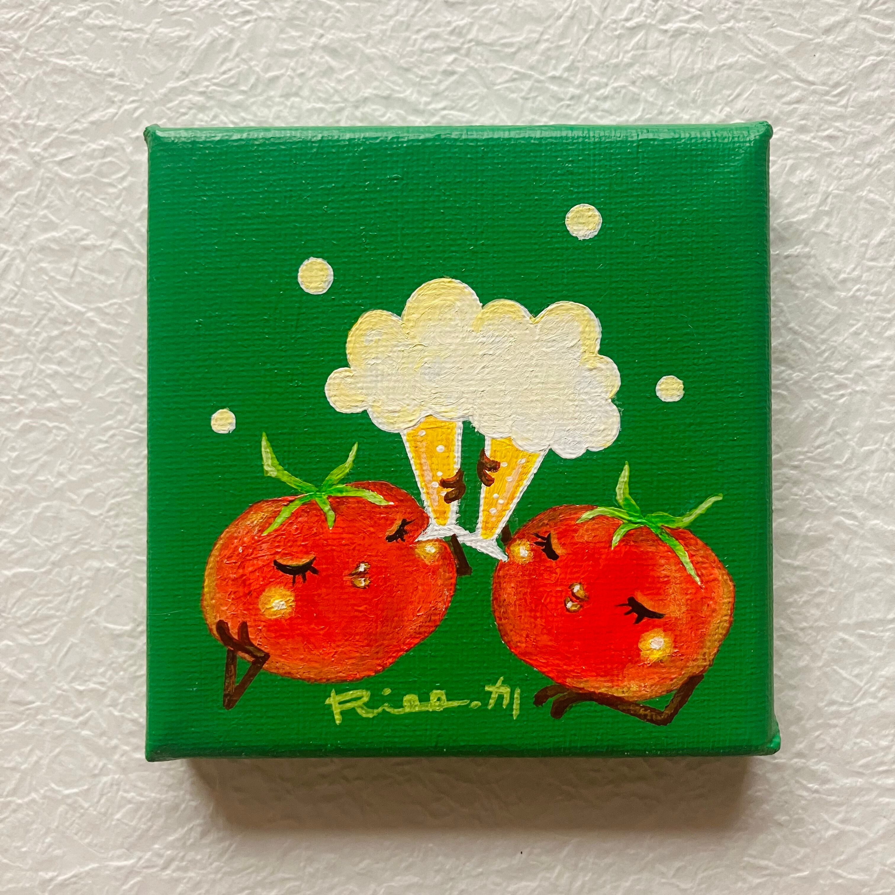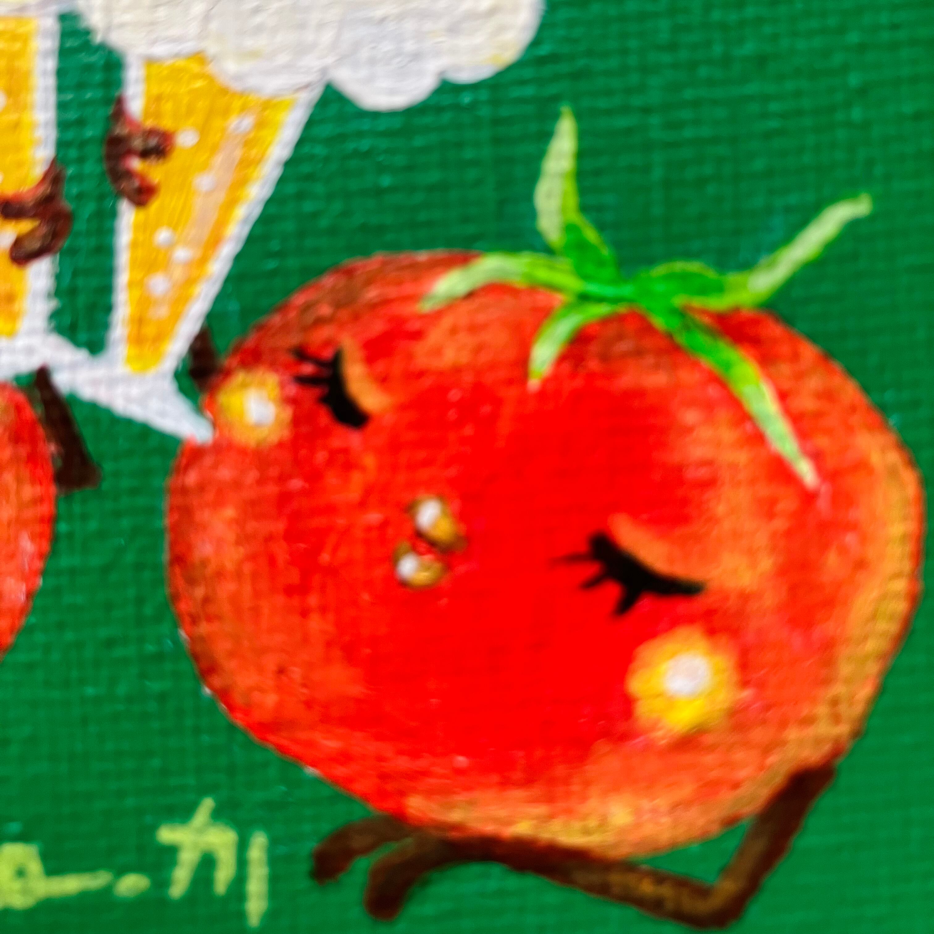 トマト ビール 野菜 夏野菜 絵 アート イラスト インテリア ミニインテリア