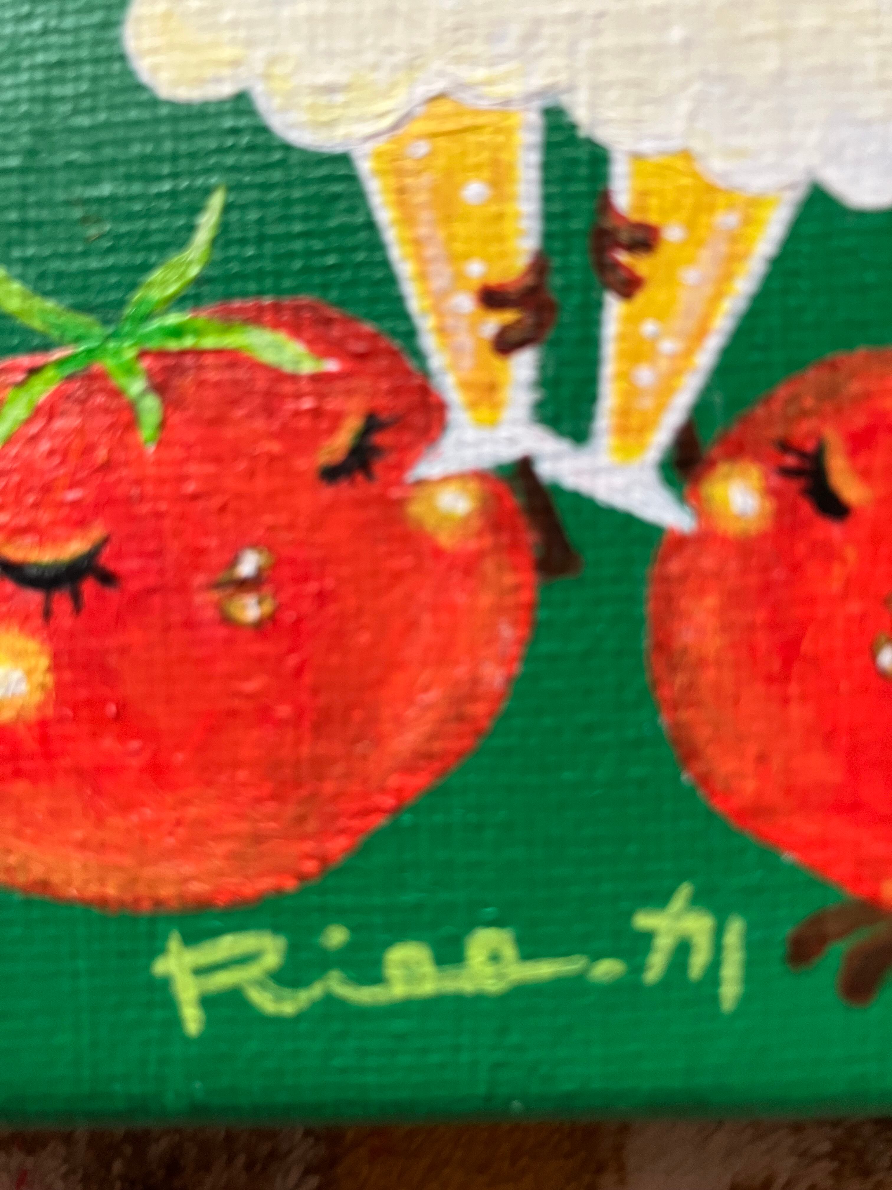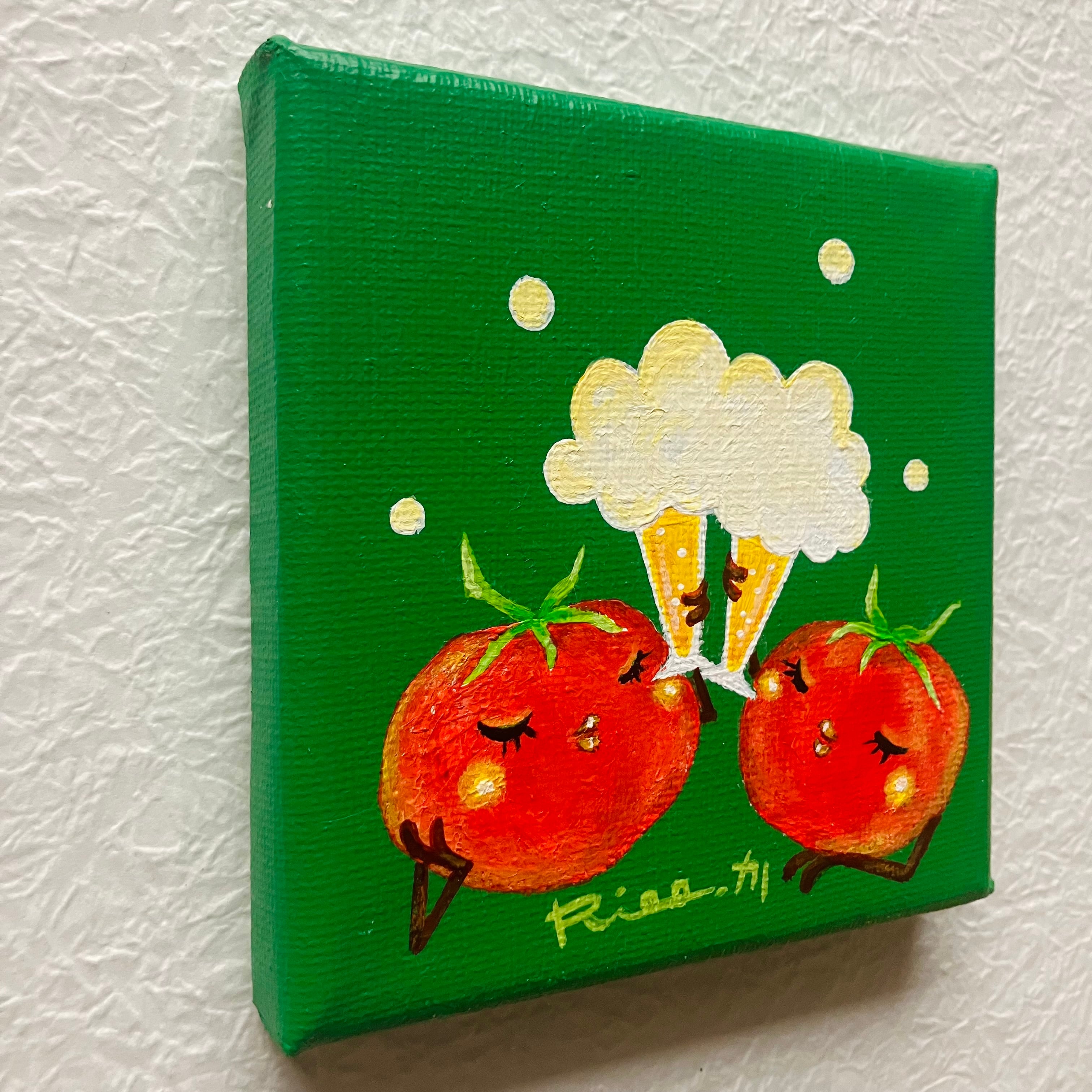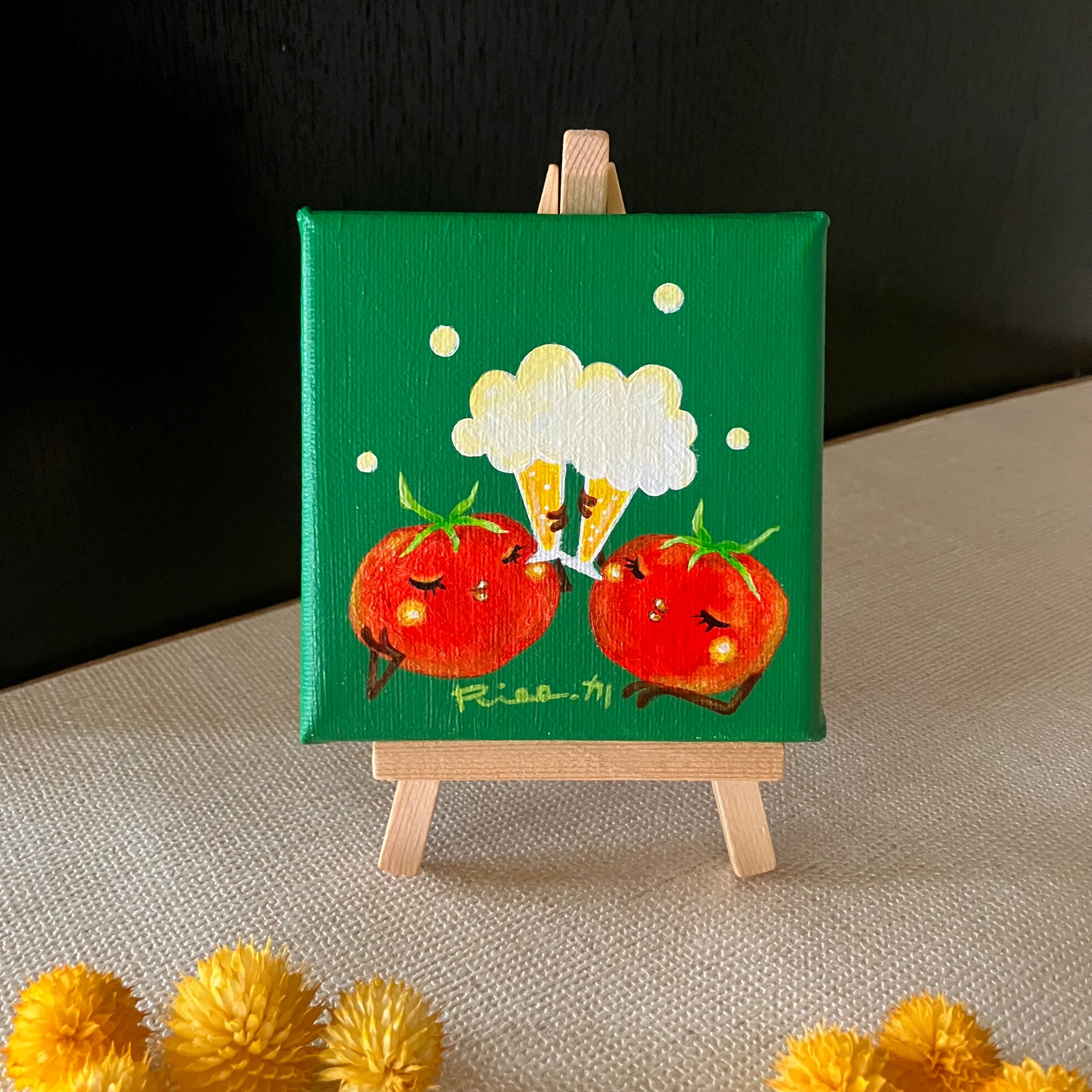 トマト ビール 野菜 夏野菜 絵 アート イラスト インテリア ミニインテリア