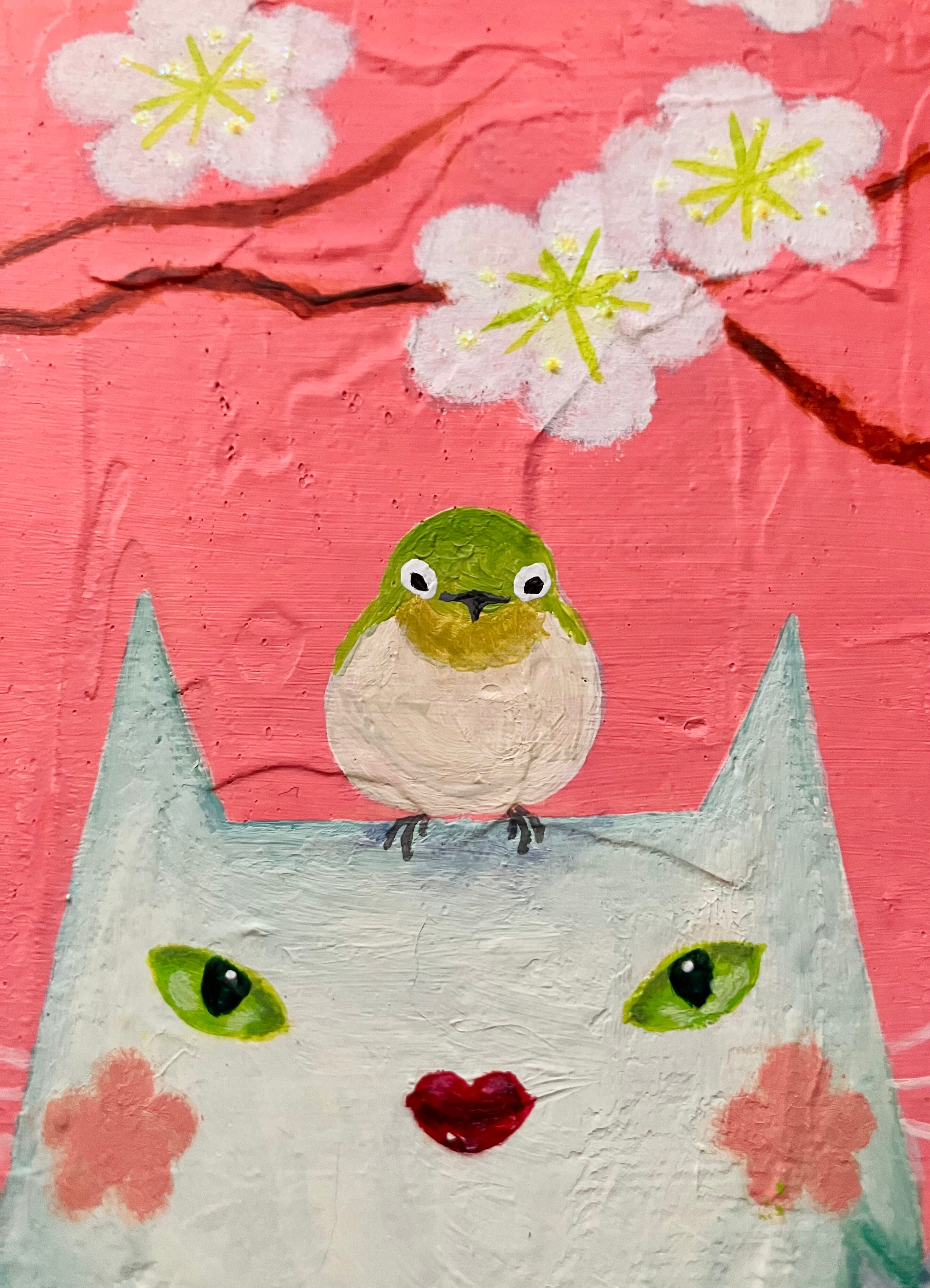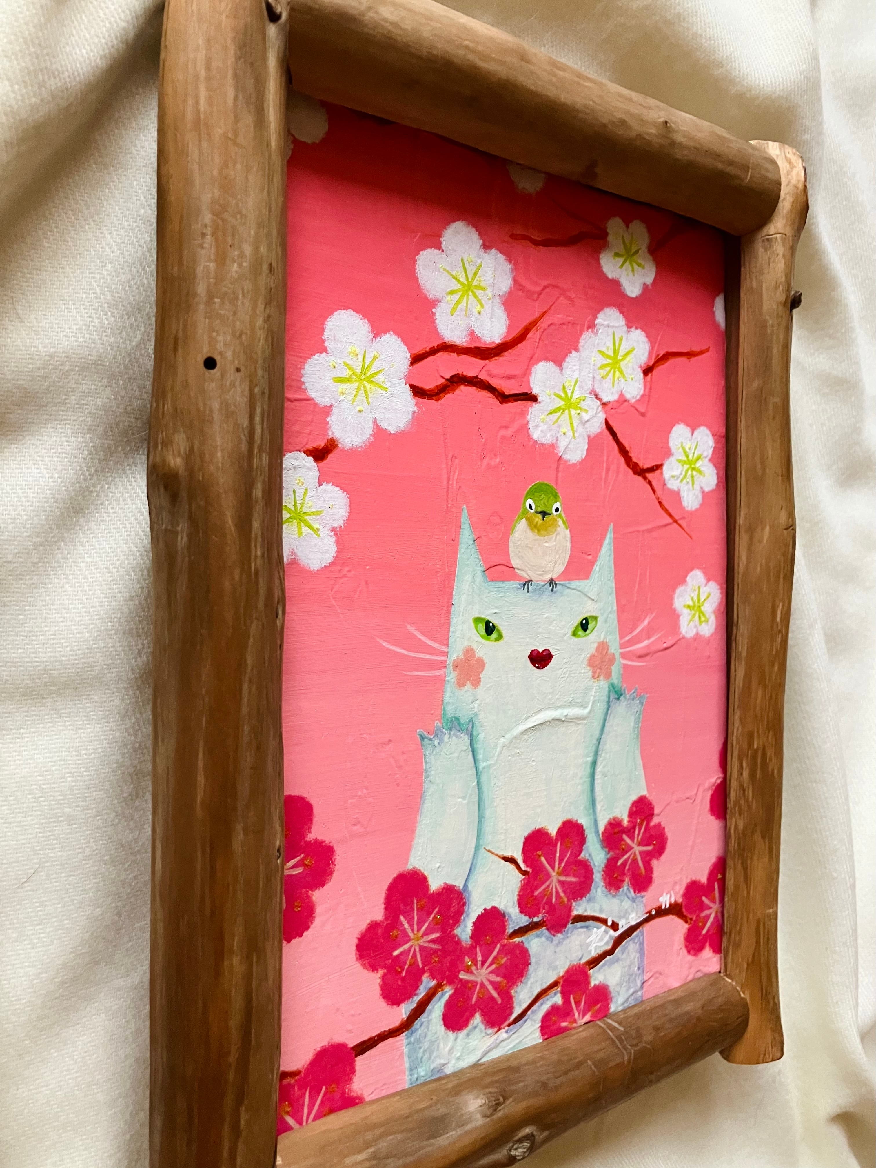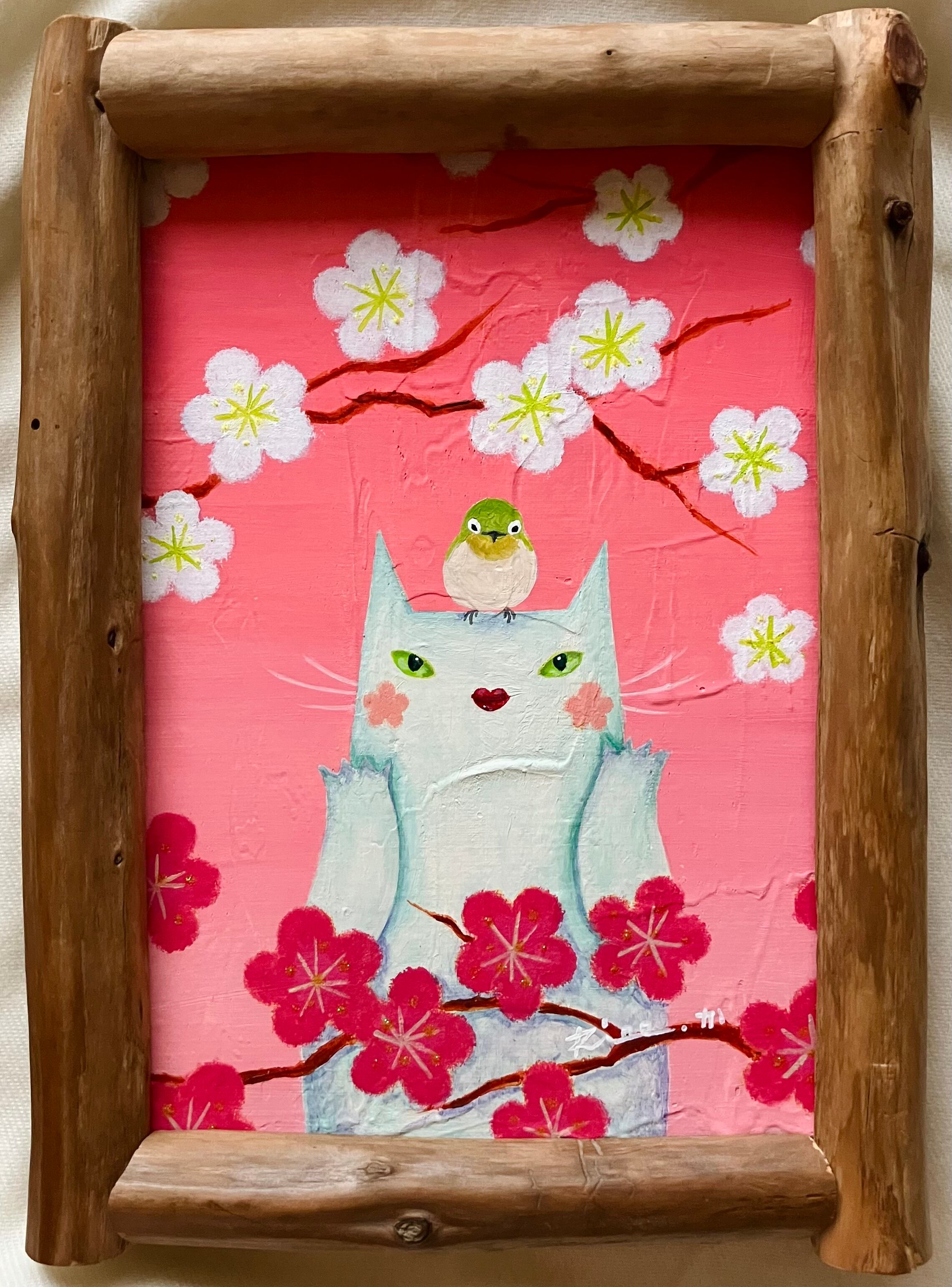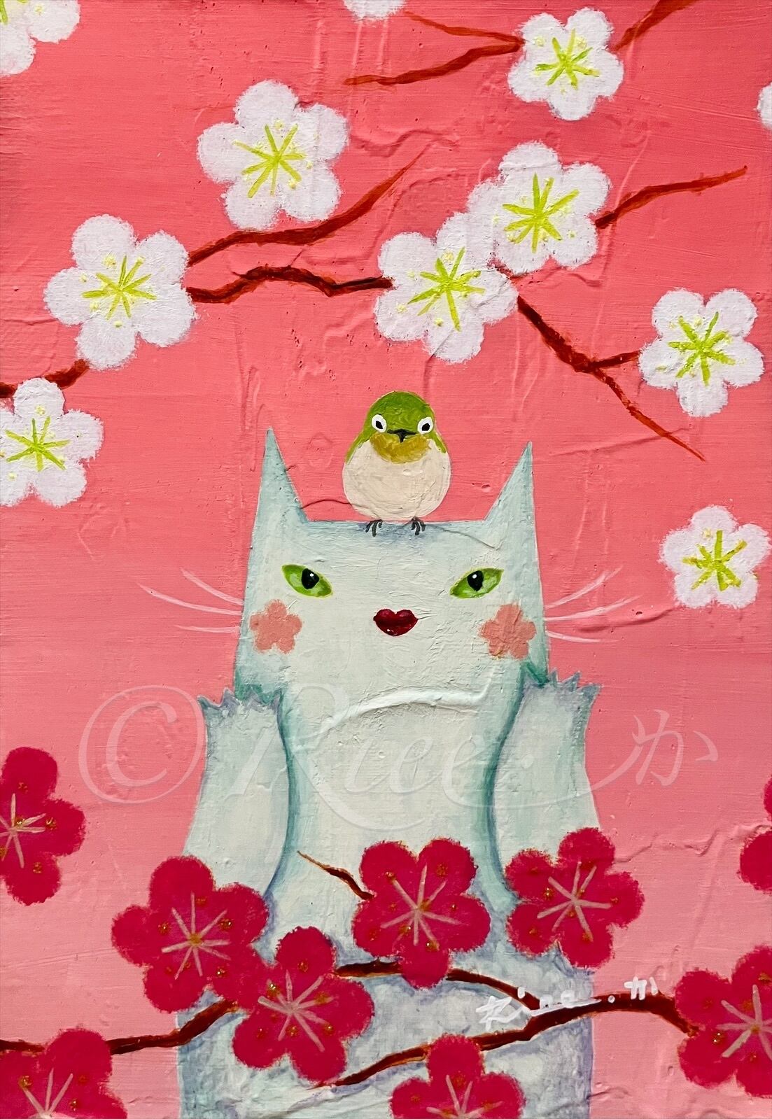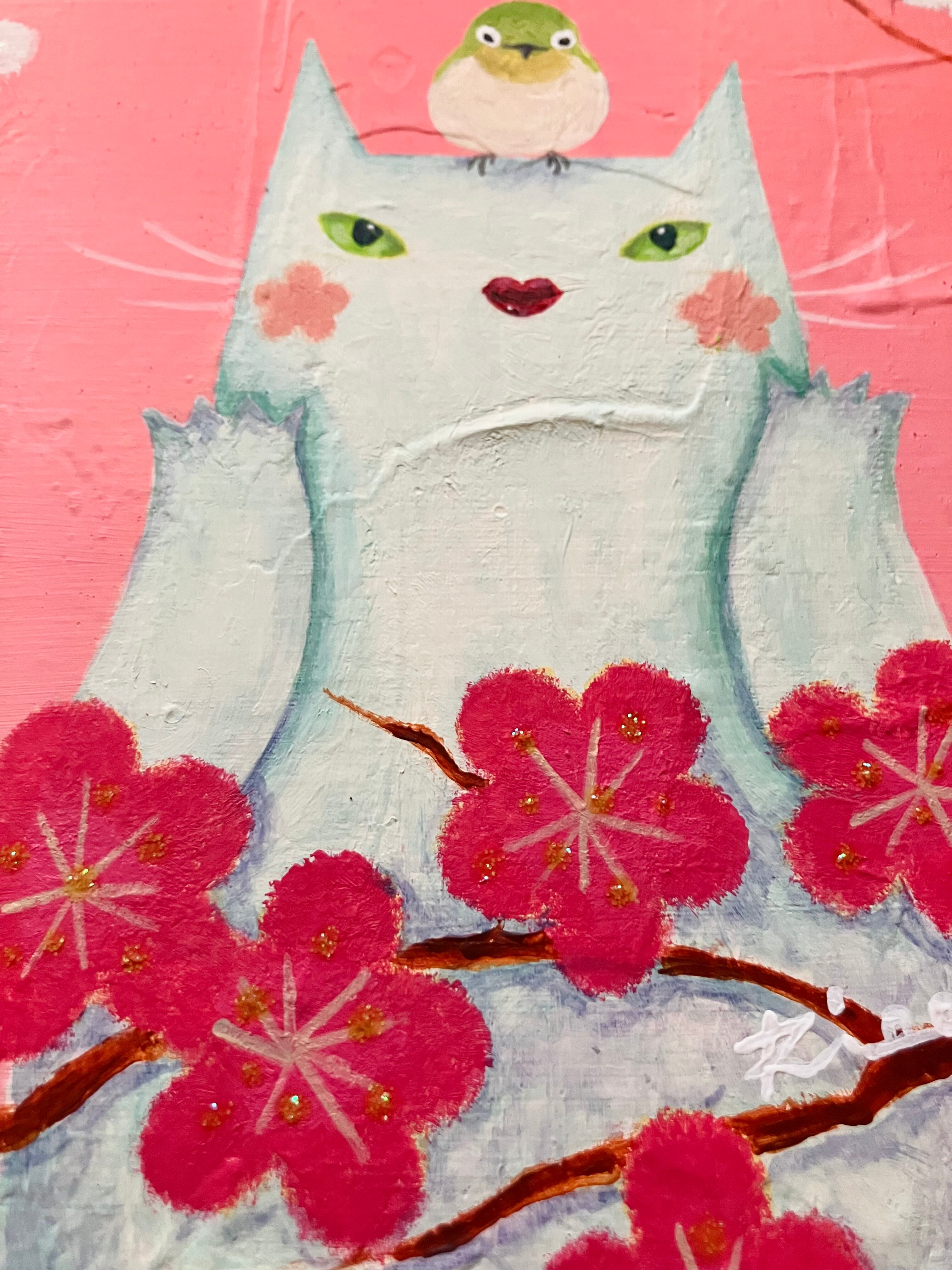 梅 猫 白猫 お花猫さん ウグイス インテリア
