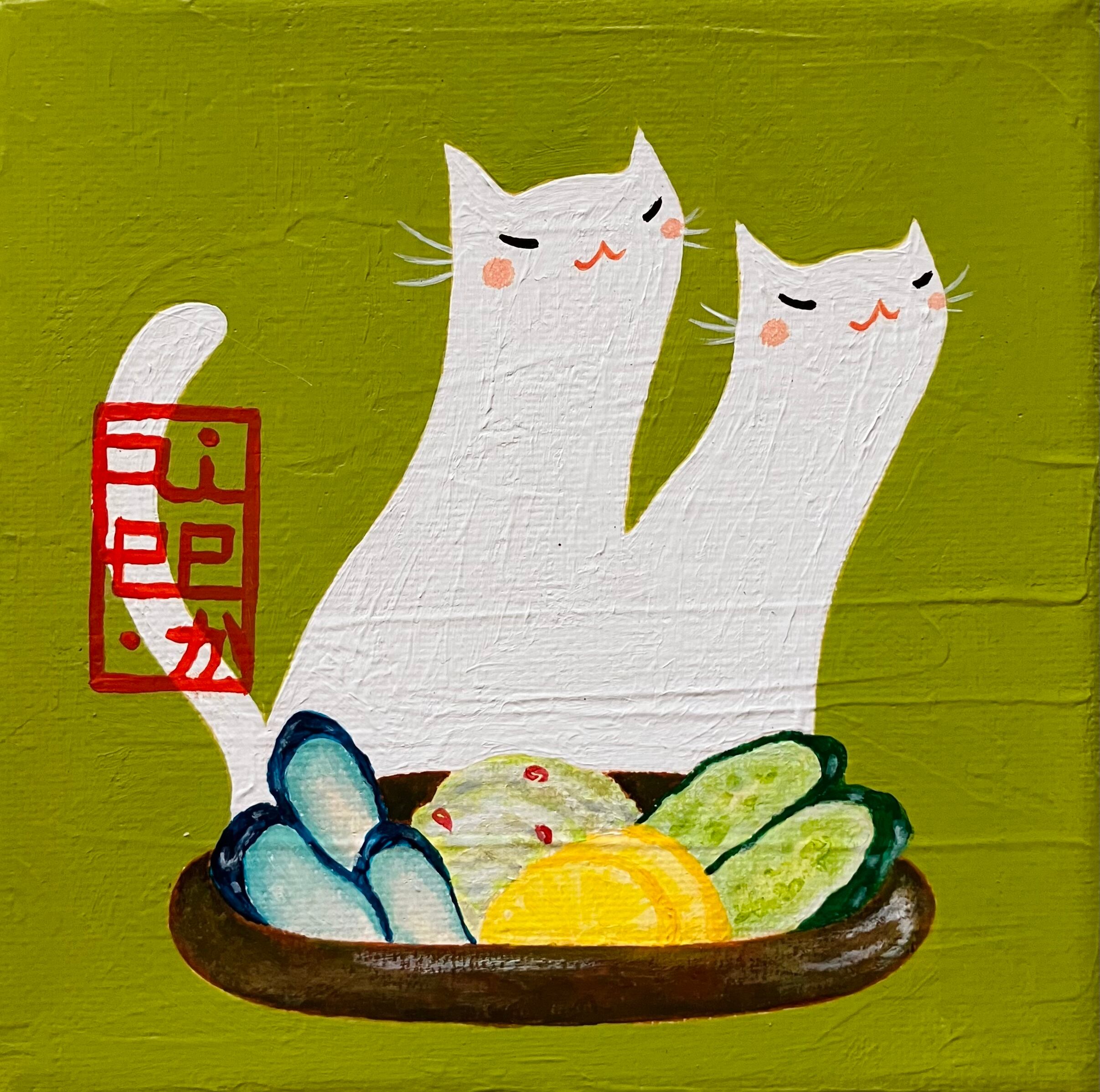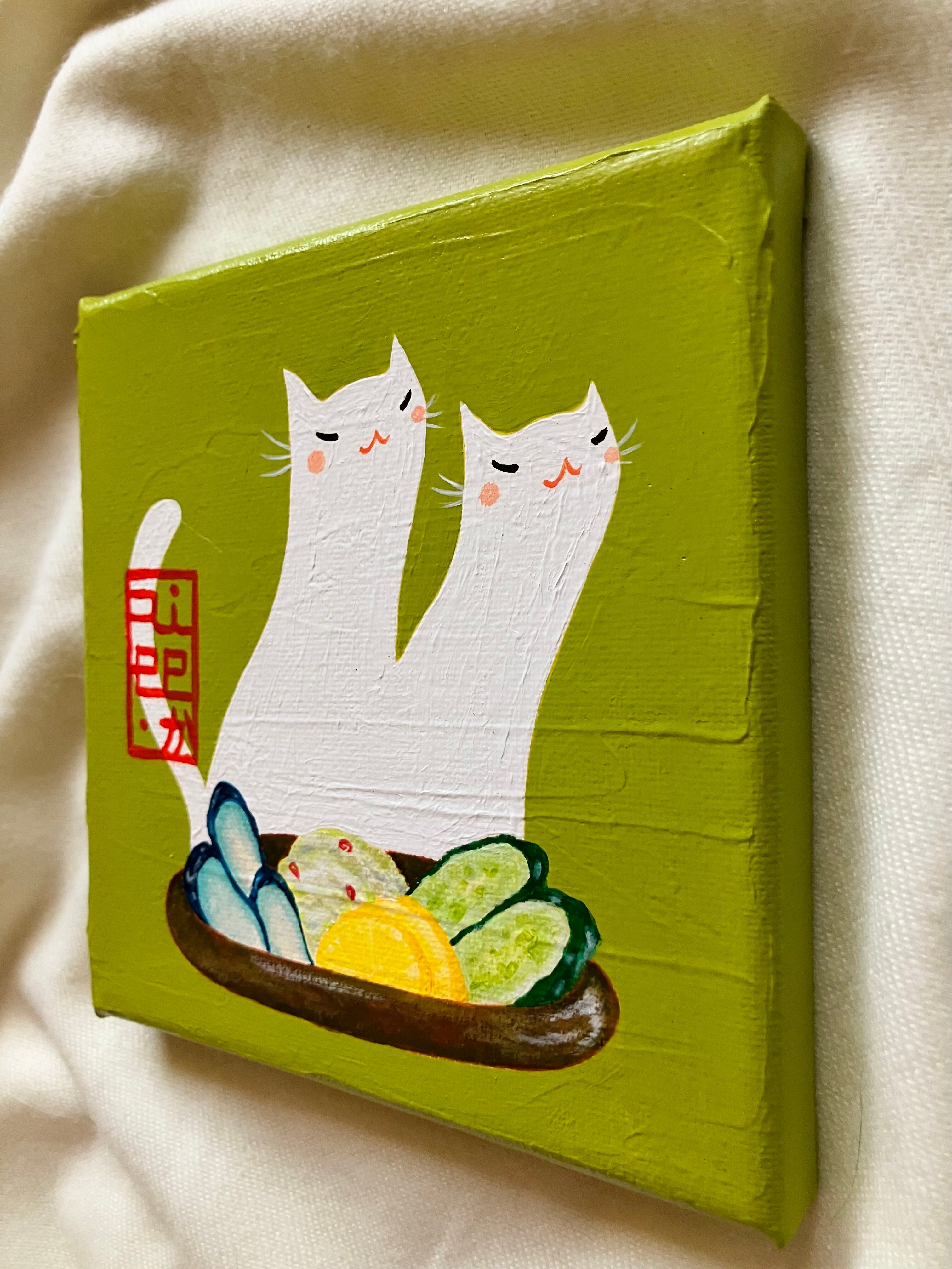 猫 白猫 お漬物 朝食 朝ご飯 和食 彩り インテリア 心温まる