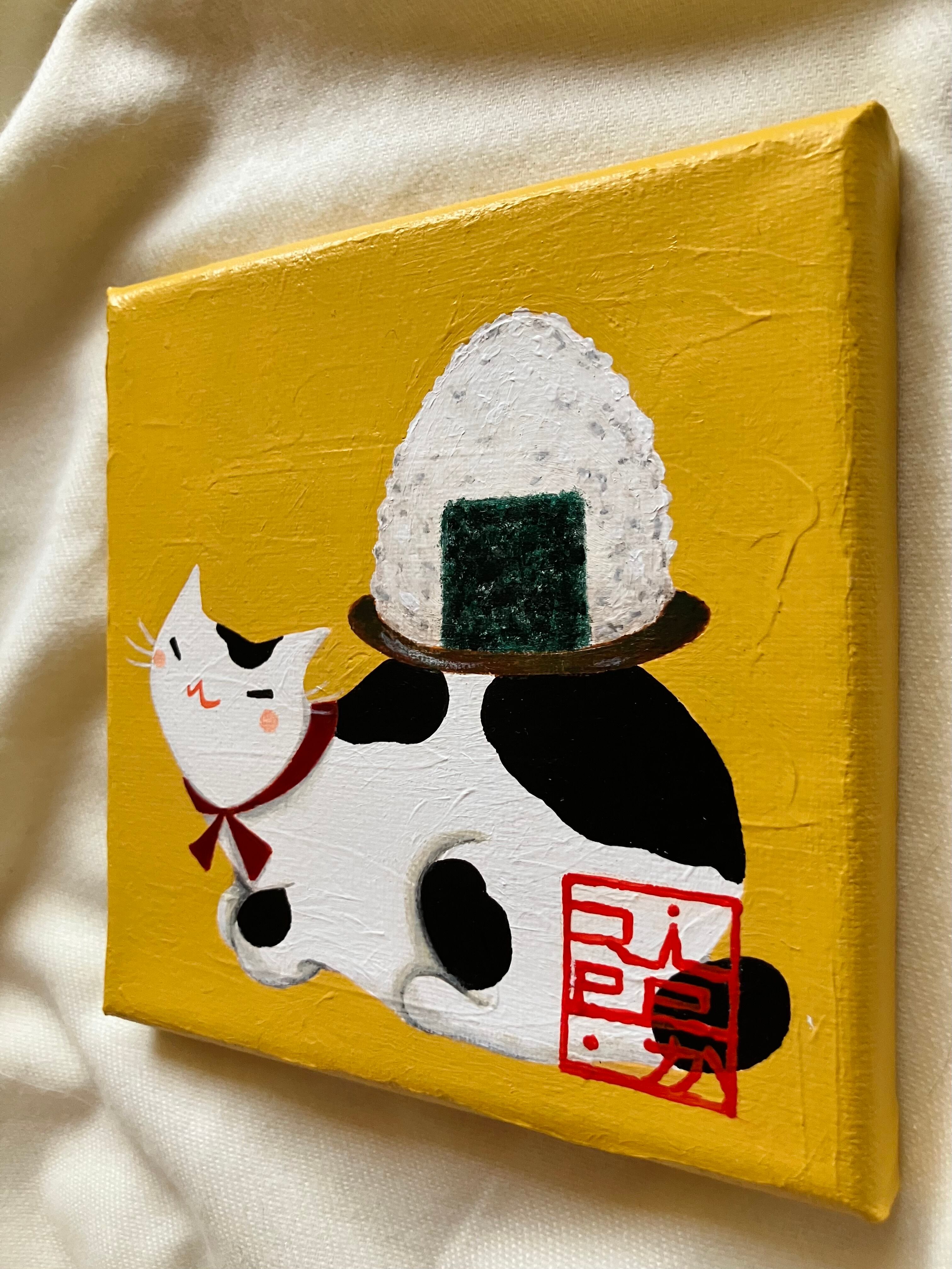 猫 ブチ猫 白黒猫 おにぎり 朝食 朝ご飯 和食 優しさ インテリア 心温まる