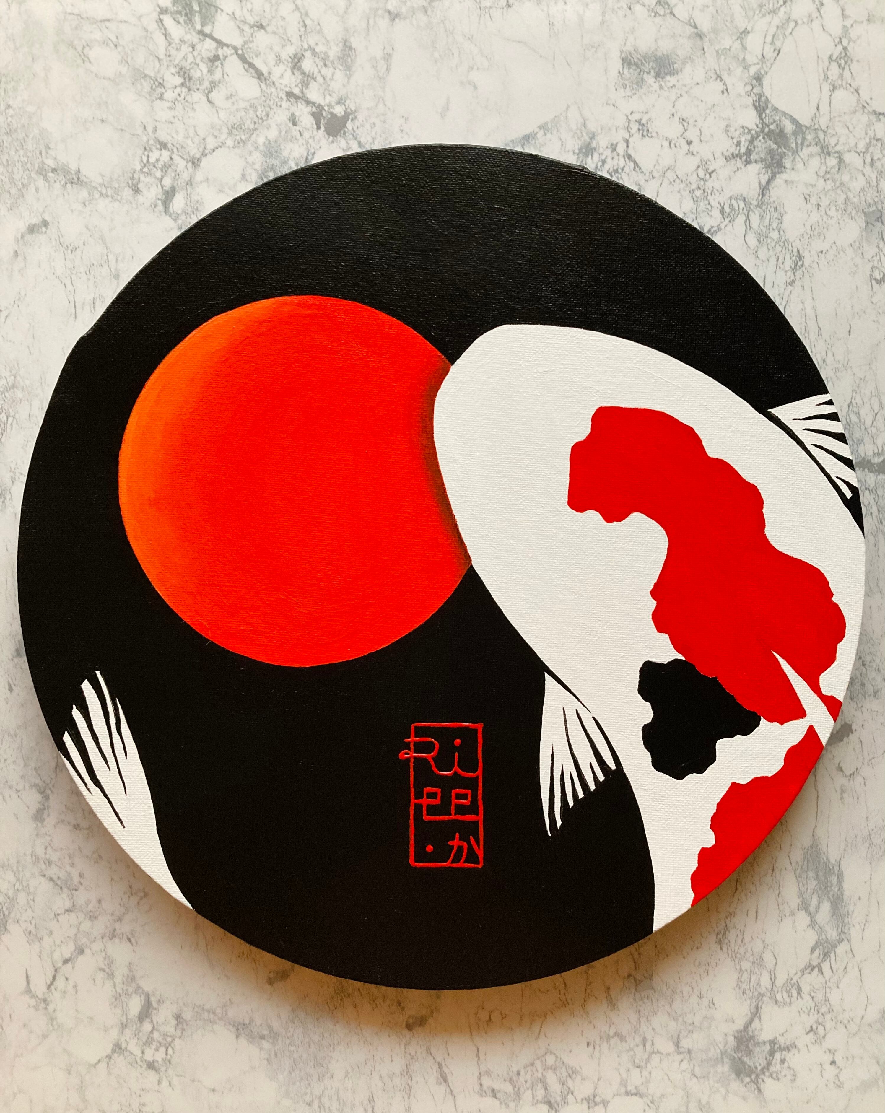 円窓錦/原画 円形キャンバス 絵 絵画 アート イラスト デザイン 錦鯉