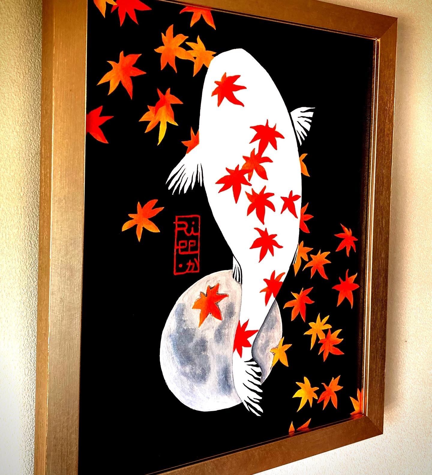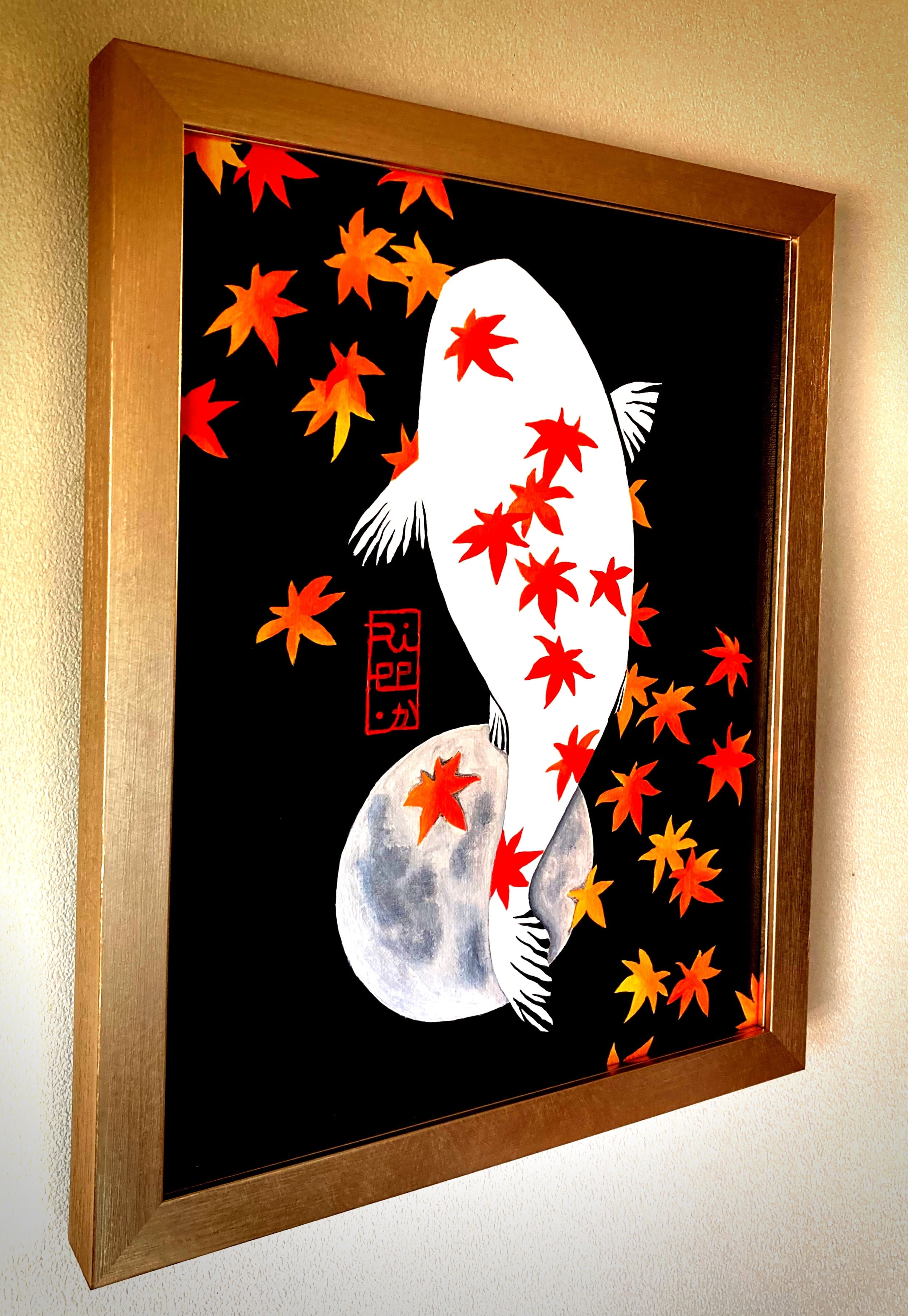 MOMIJI錦/原画 額縁入り 絵 絵画 アート イラスト デザイン 錦鯉 紅葉