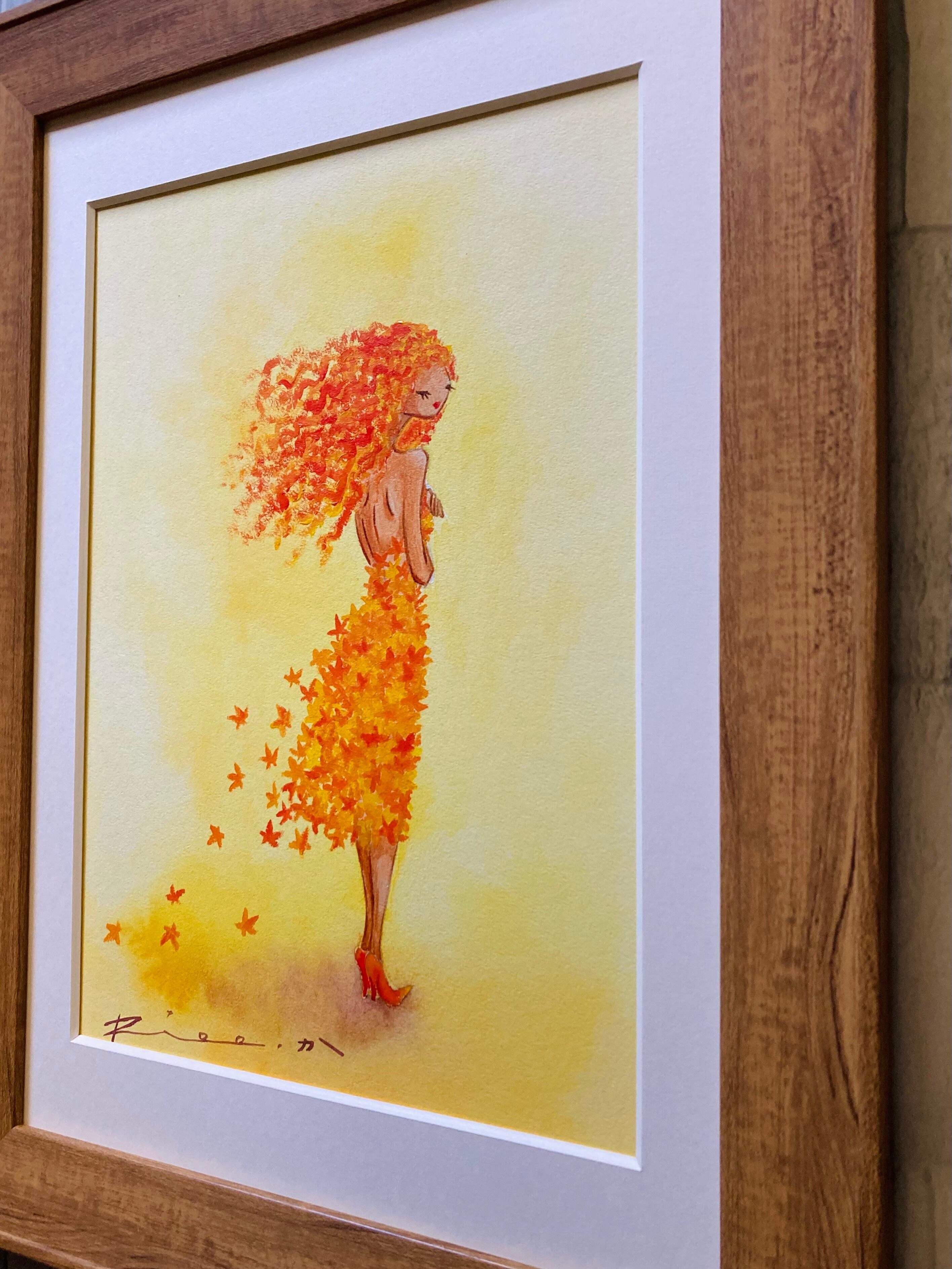 散りゆくドレス/原画 額縁入り 絵 絵画 アート イラスト 紅葉 ミュージックジャケット作品