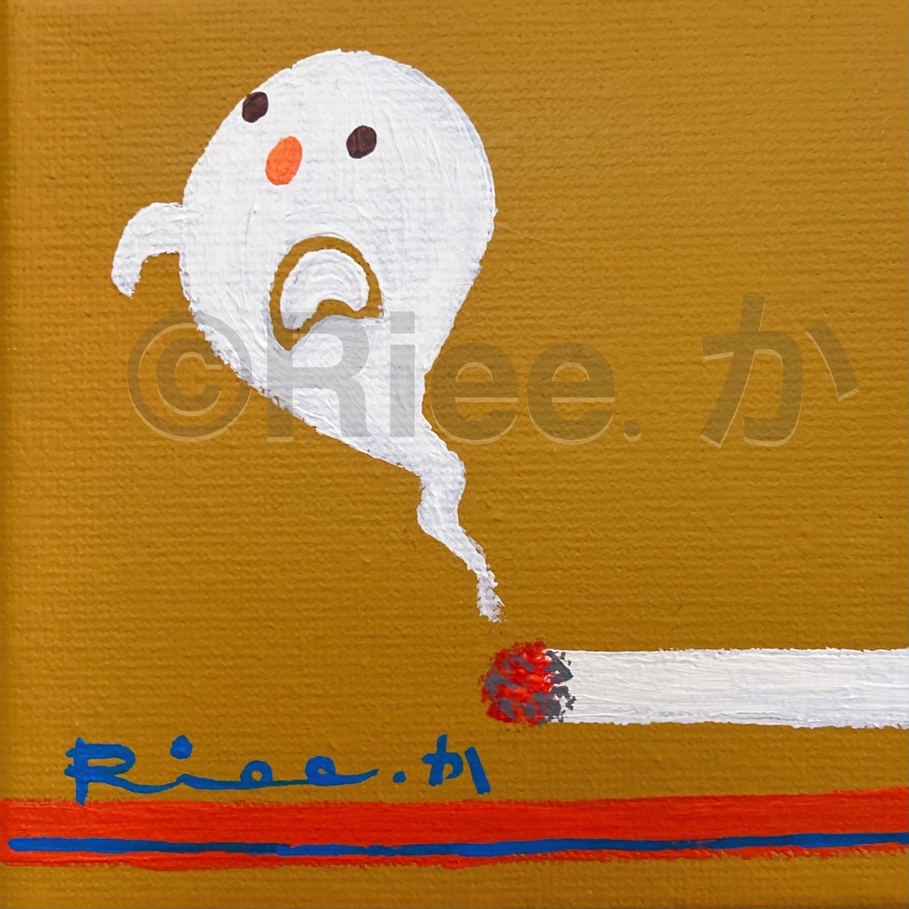 おばけ タバコ イラスト アート ミニキャンバス 原画 ケムリ