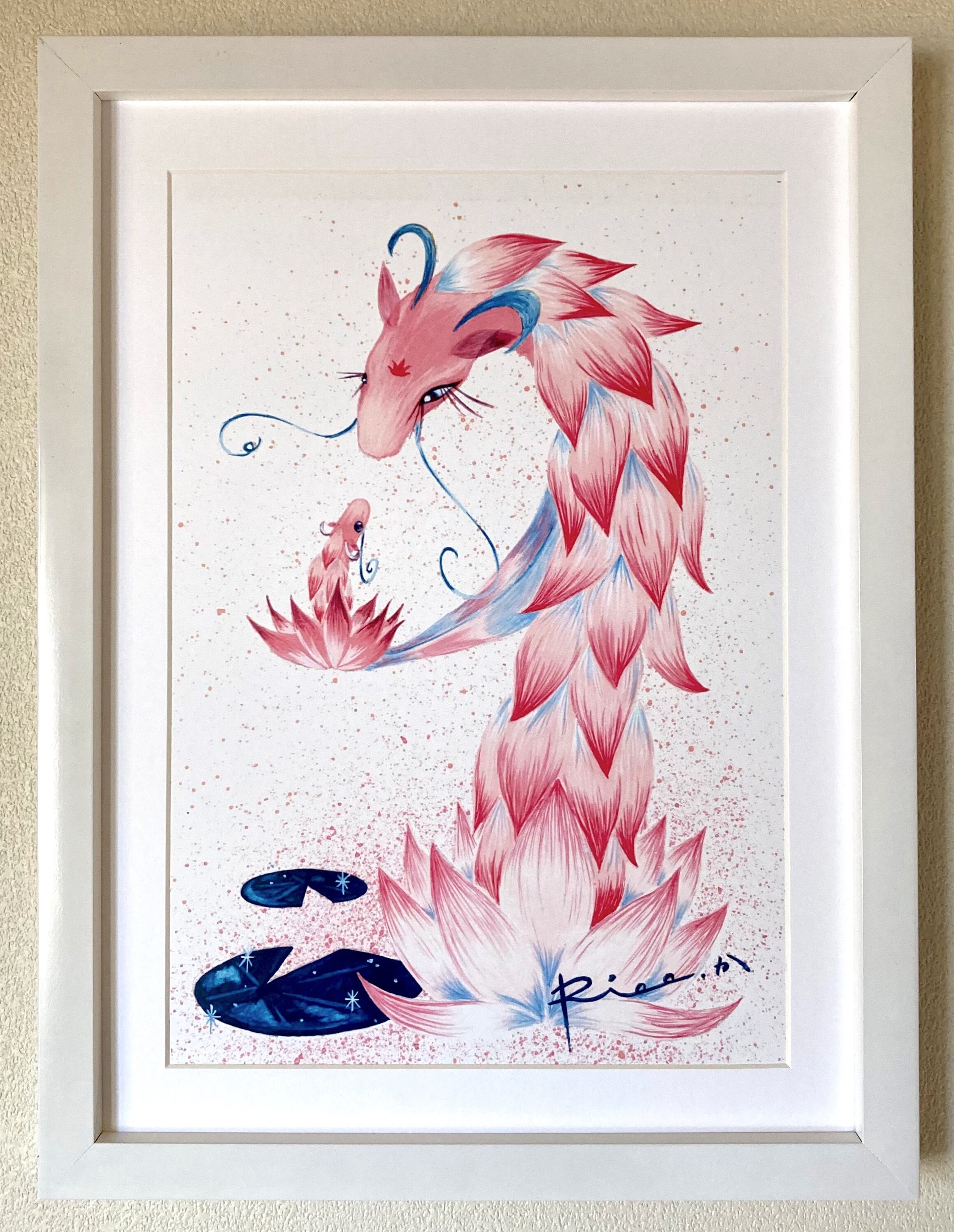 龍 開運 ドラゴン 睡蓮龍 運気改善 占い スピリチュアル 睡蓮 絵 イラスト アート 絵画 印刷物 複製画 アートポスター 願望成就 インテリア
