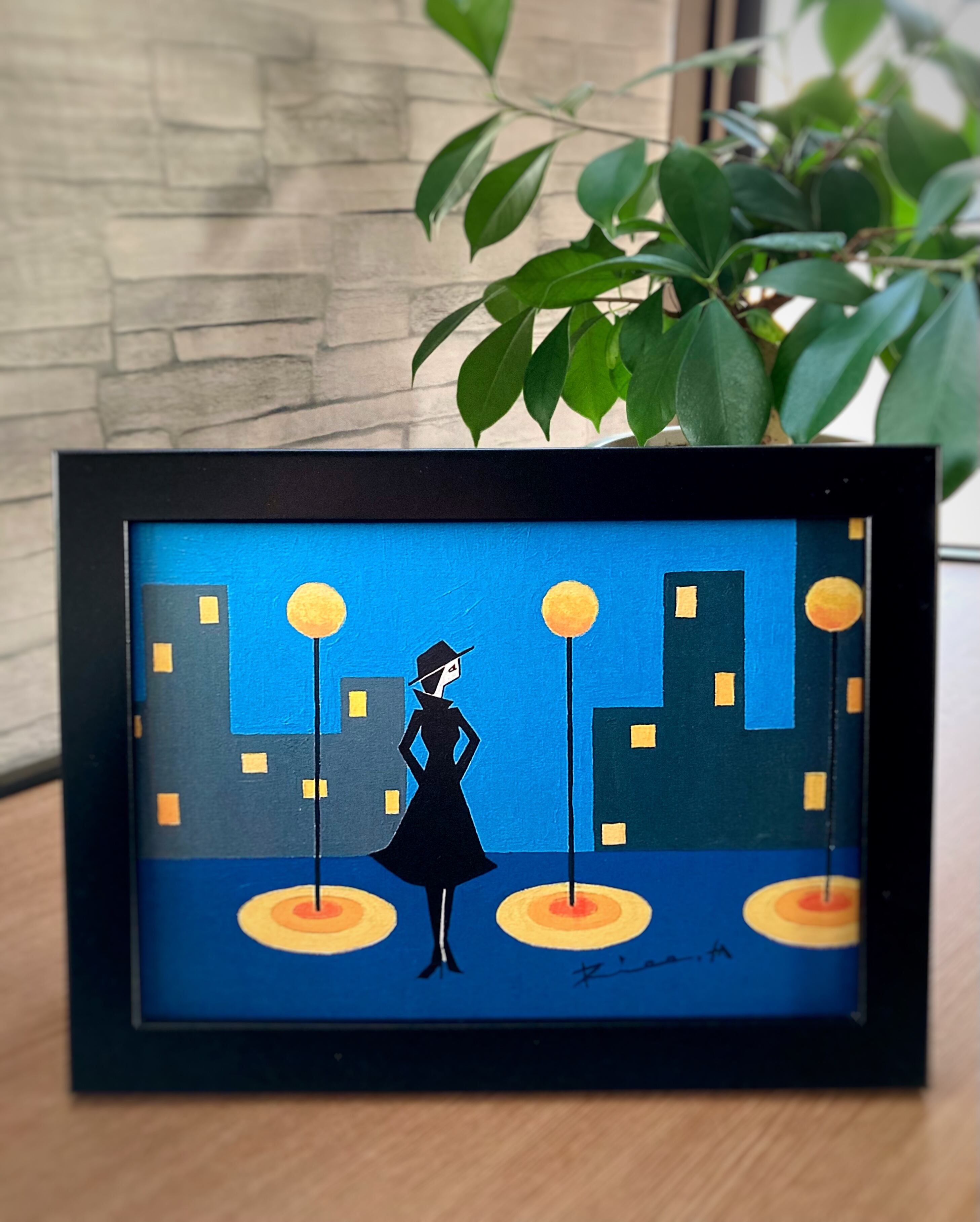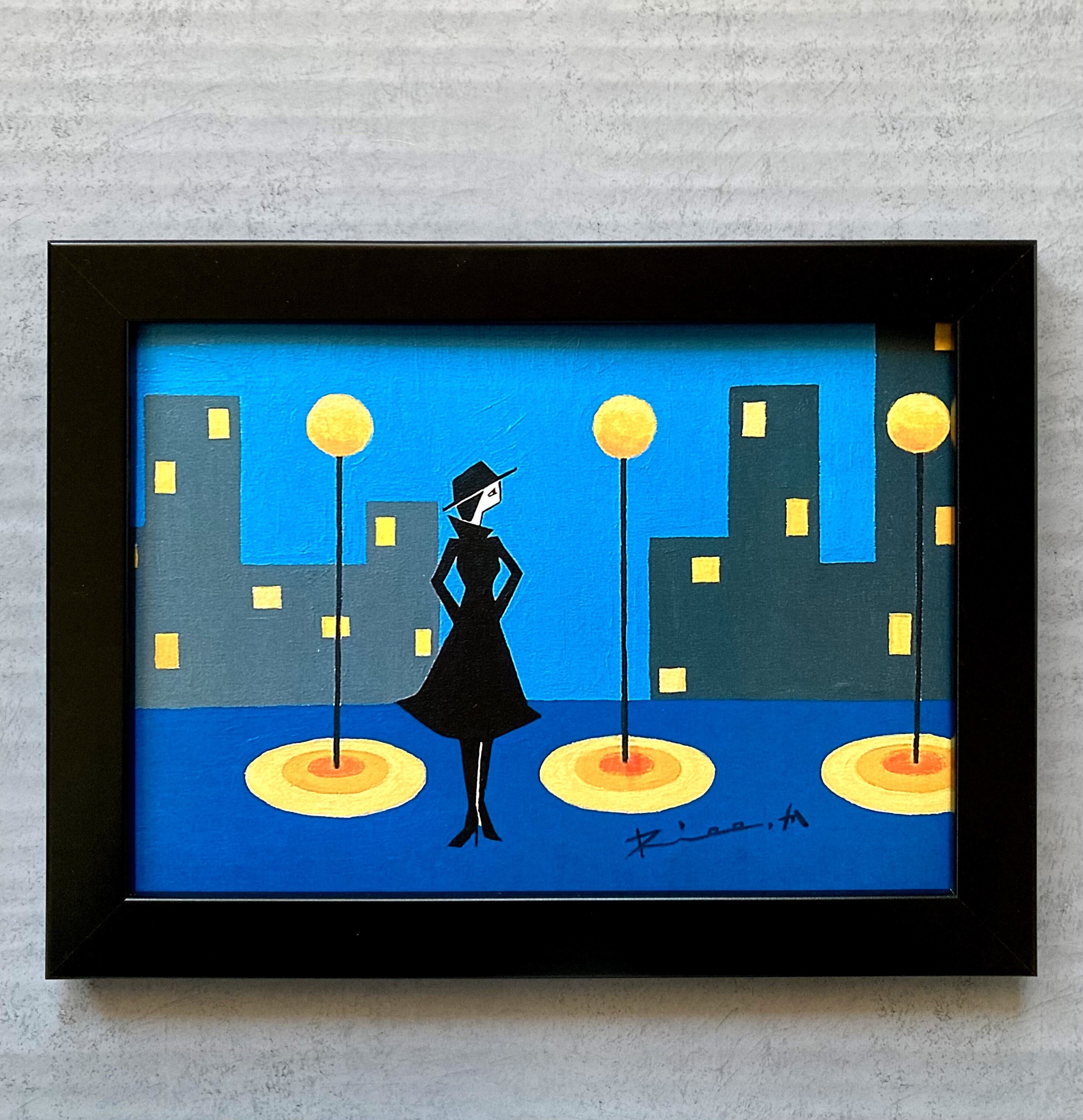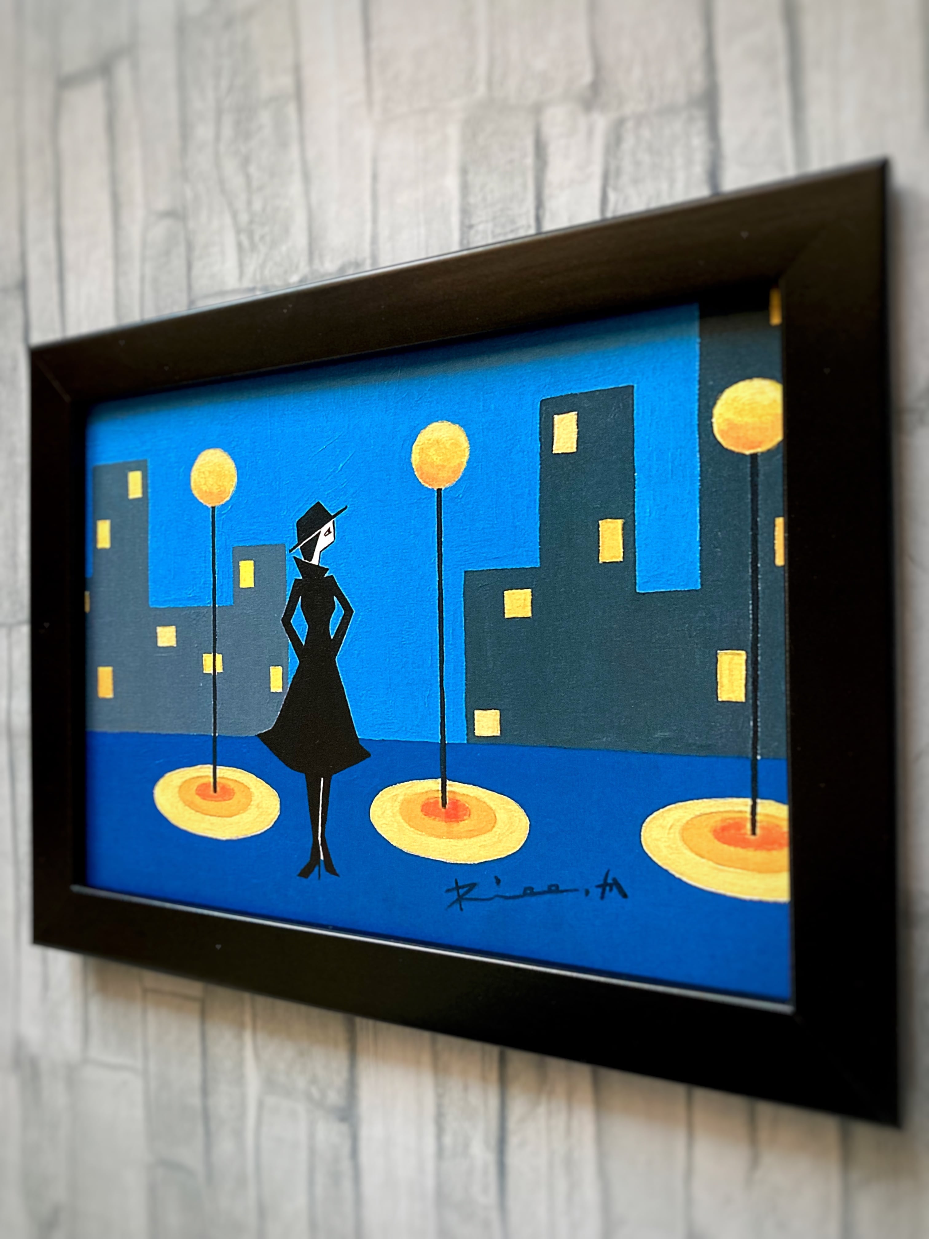 進む女シリーズ 夕暮れ 街灯 街並み 複製画 アートポスター インテリア