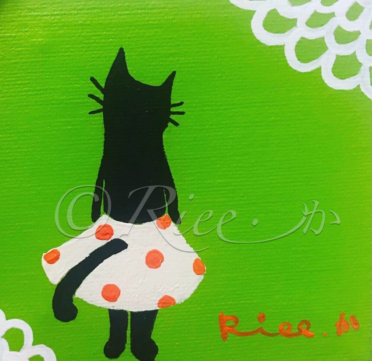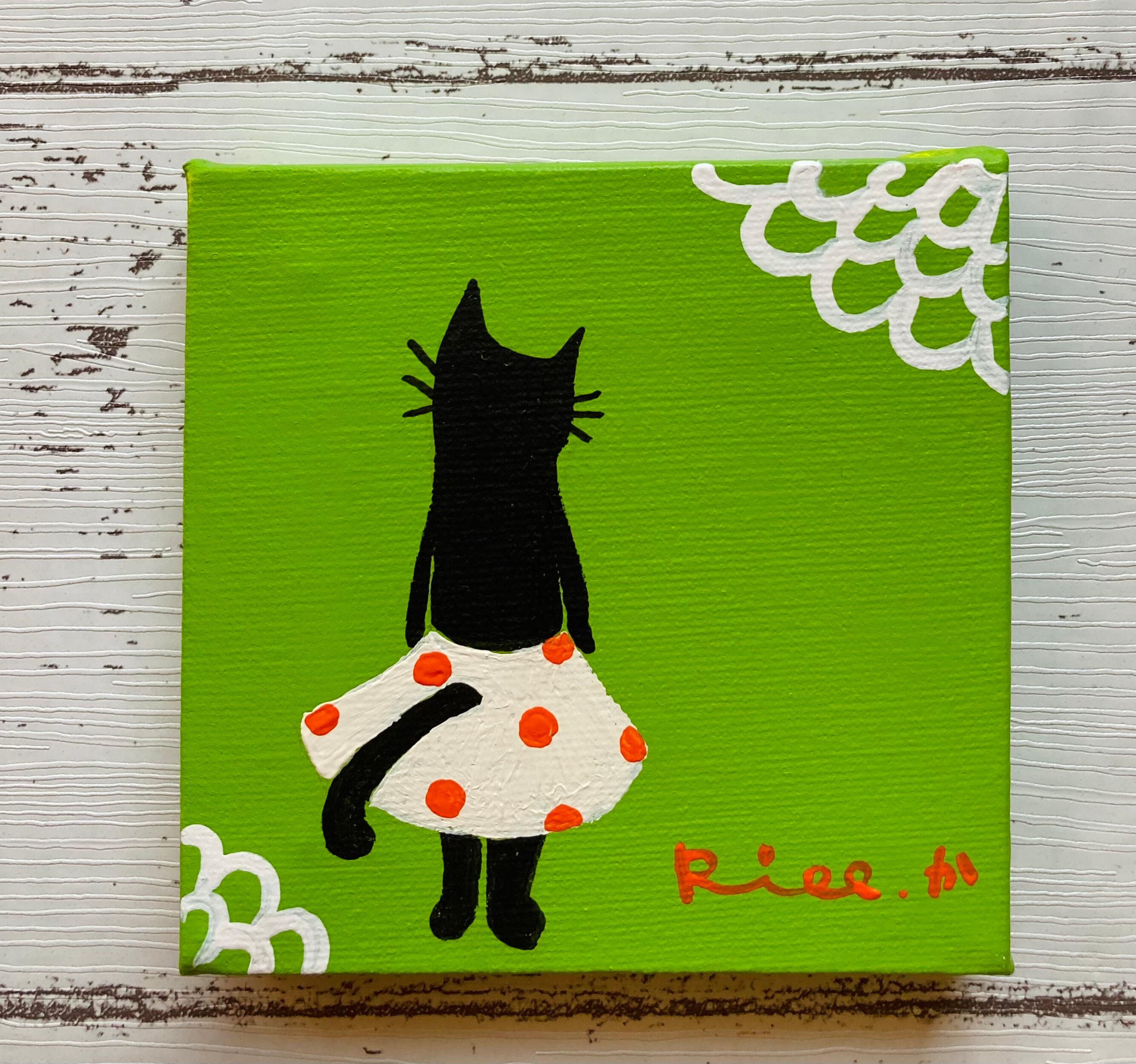 猫 黒猫 水玉 絵 イラスト アート 絵画 ミニキャンバス インテリア