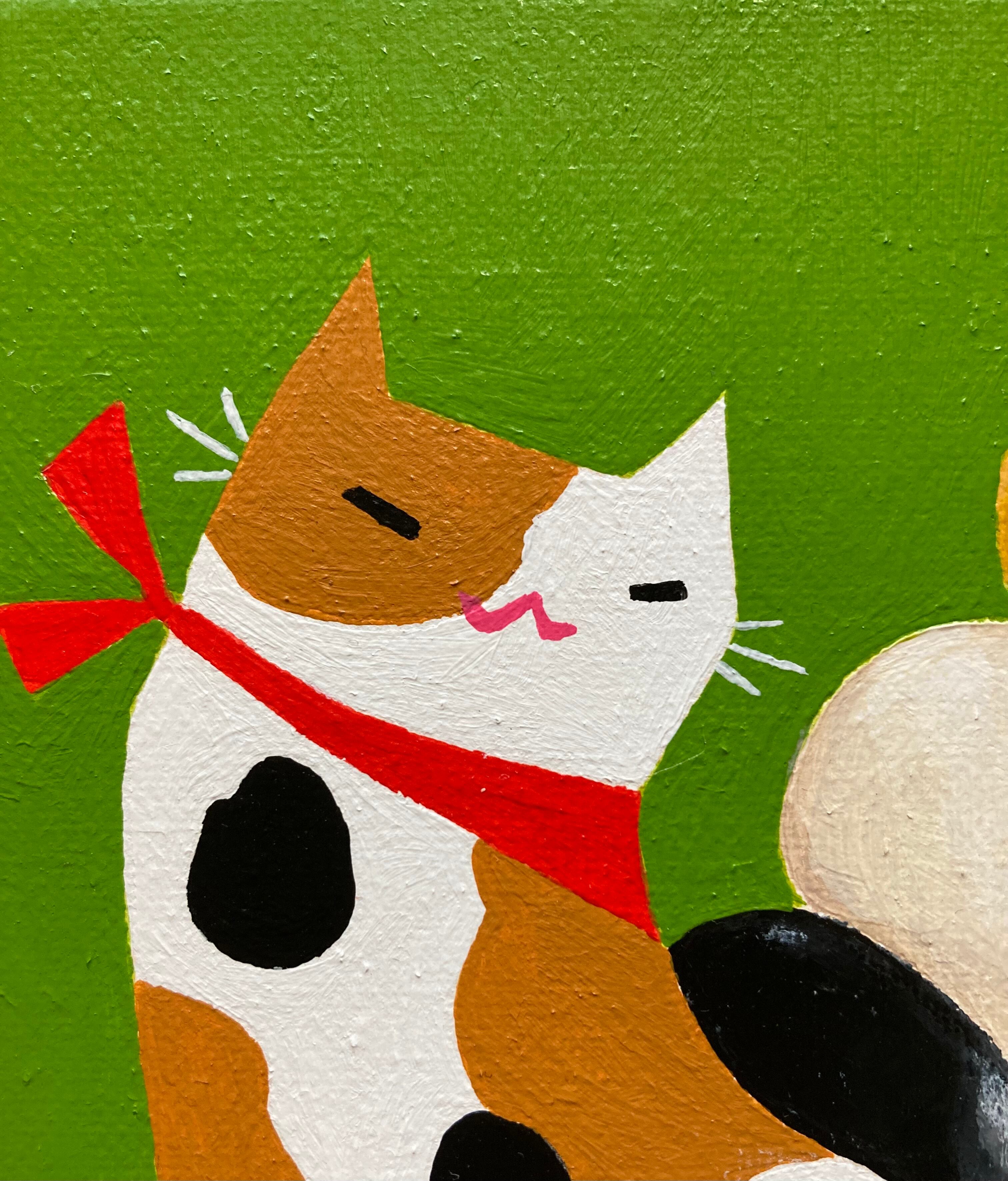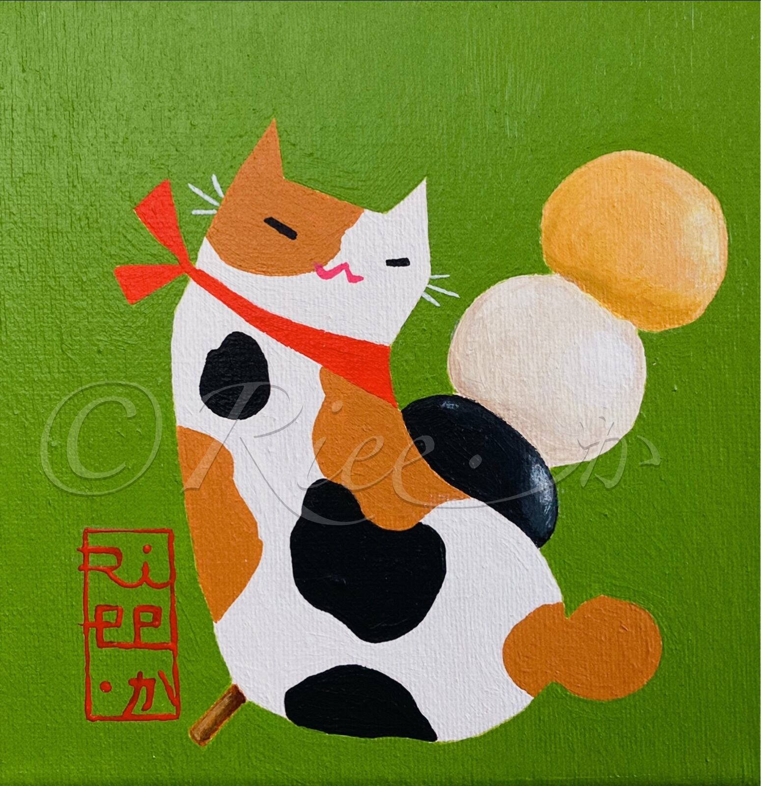 猫 三毛猫 お団子 和菓子 絵 アート イラスト 絵画 キャンバス ミケ ねこ ネコ かわいい インテリア