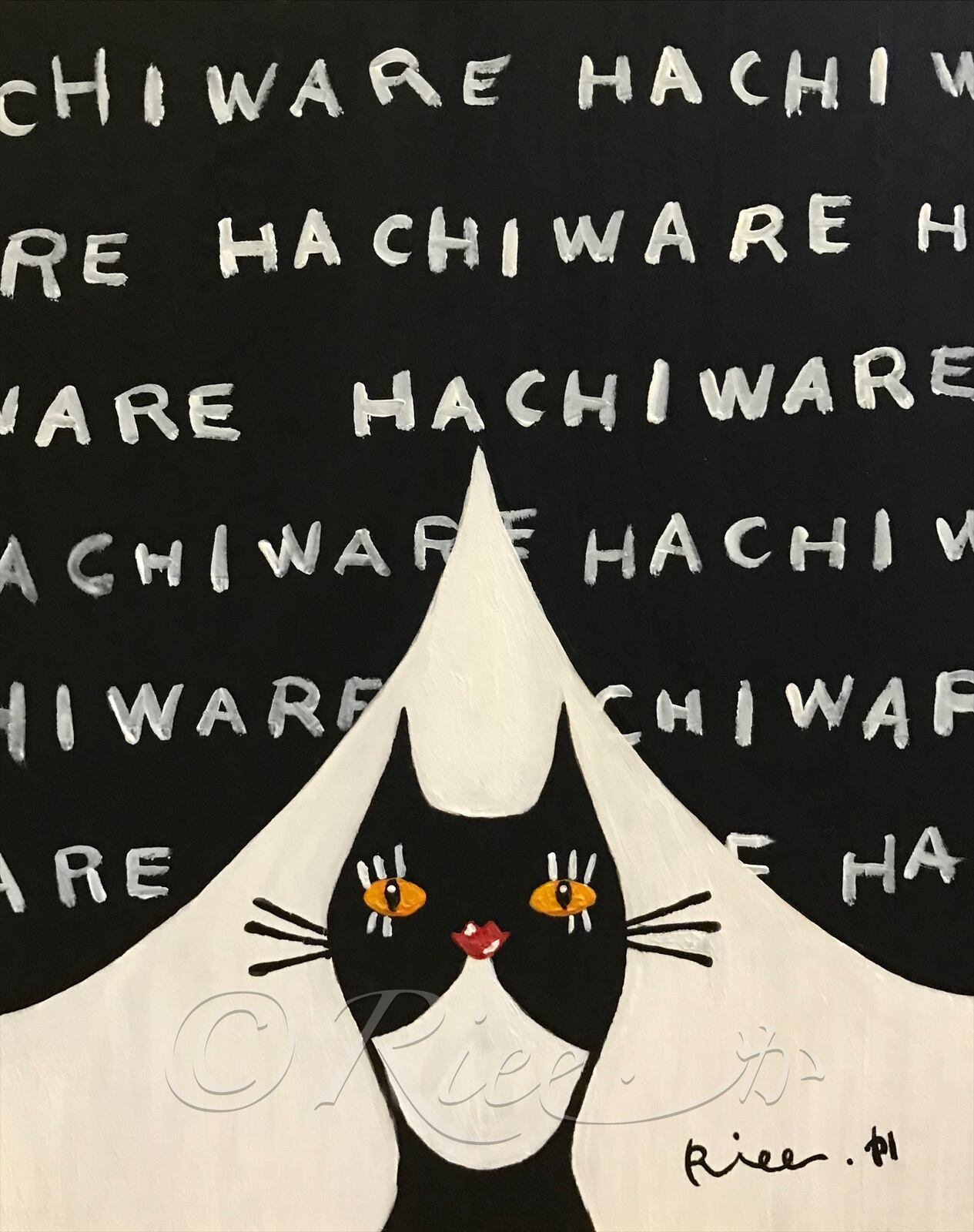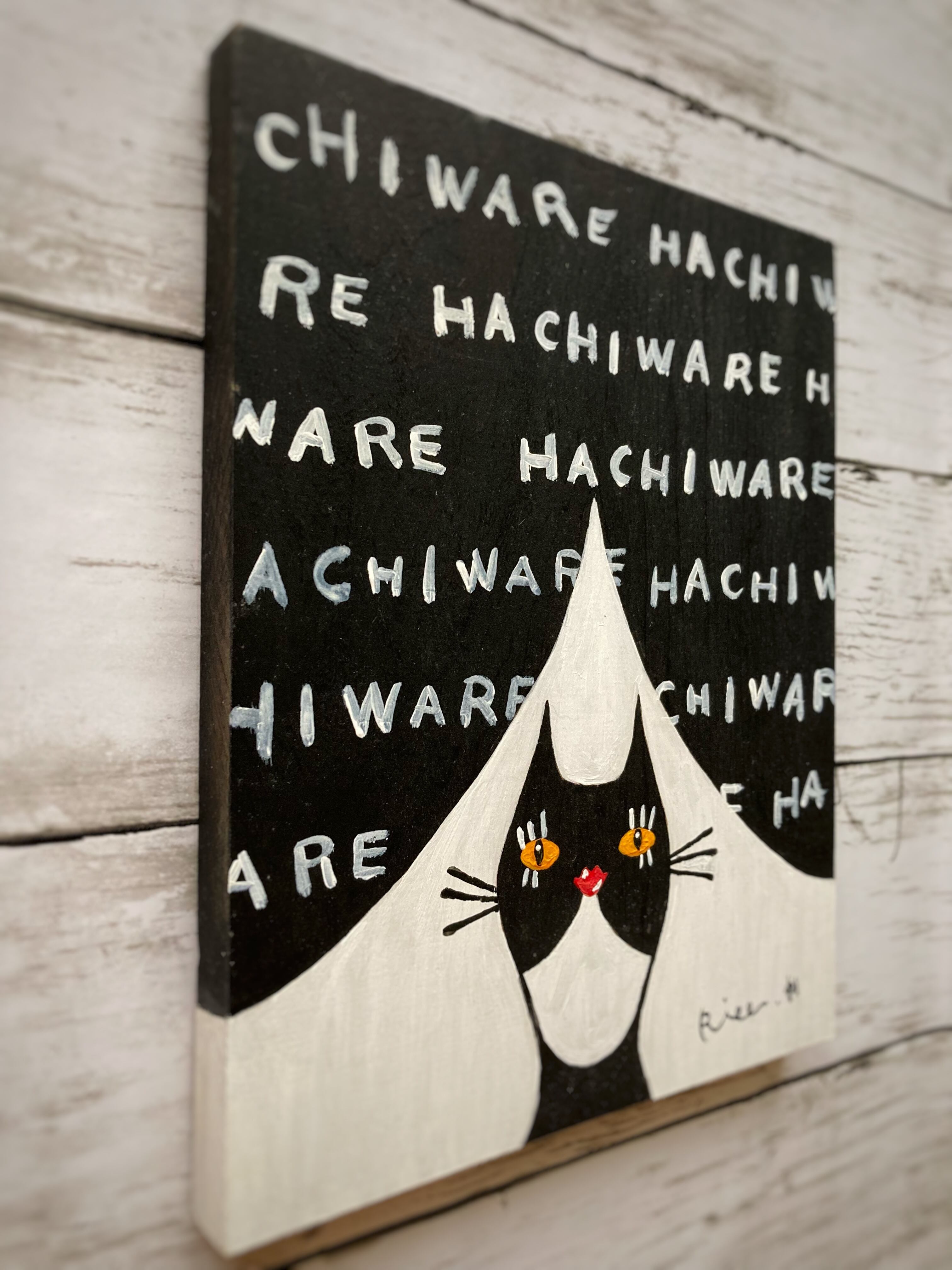 猫 ハチワレ 絵 アート イラスト 絵画 原画 インテリア
