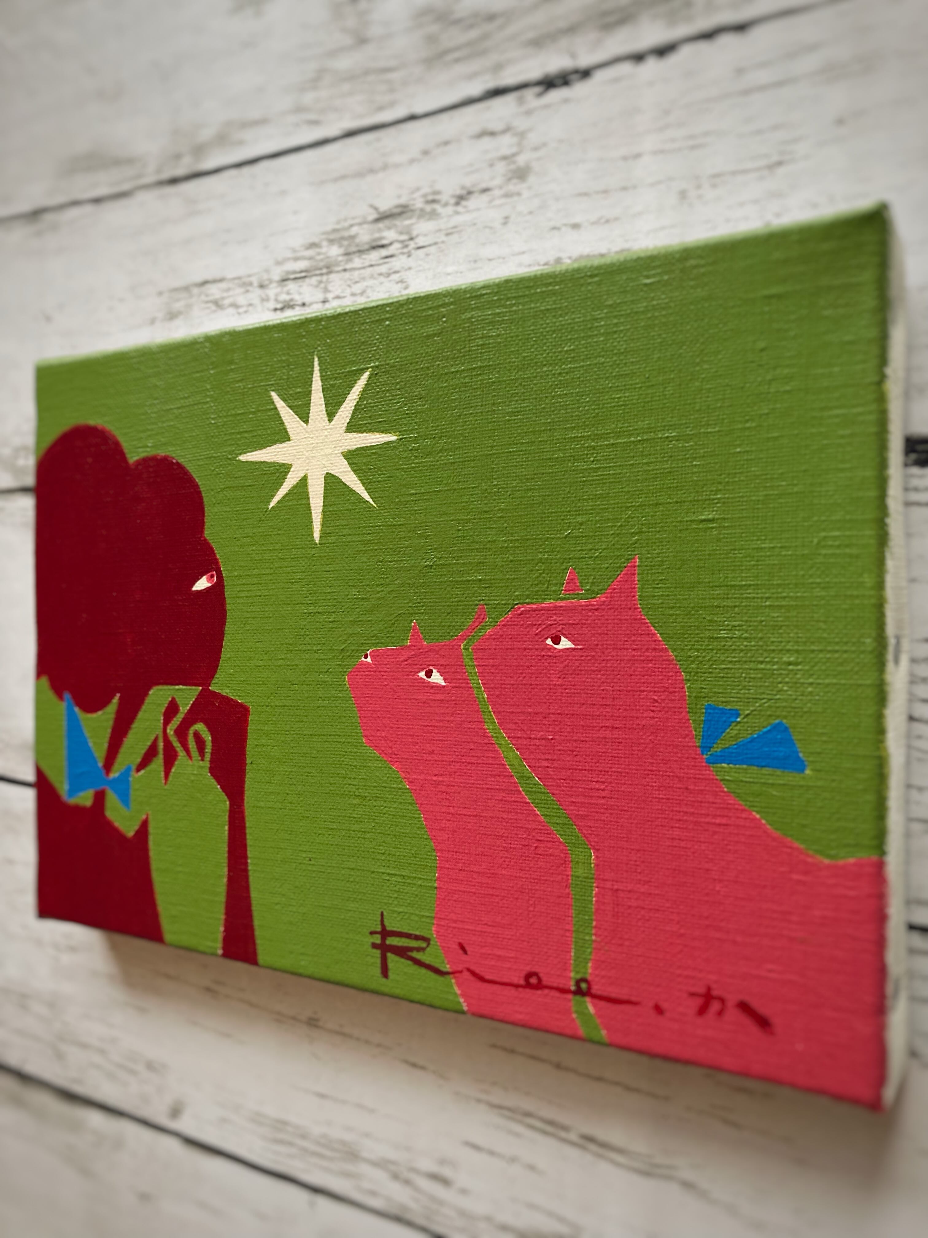 女性・猫・錦鯉・龍を主に描く。頭にパッと浮かんできたものや夢の中で描いていた絵を記憶し、それを出来る限り忠実に描くスタイル。