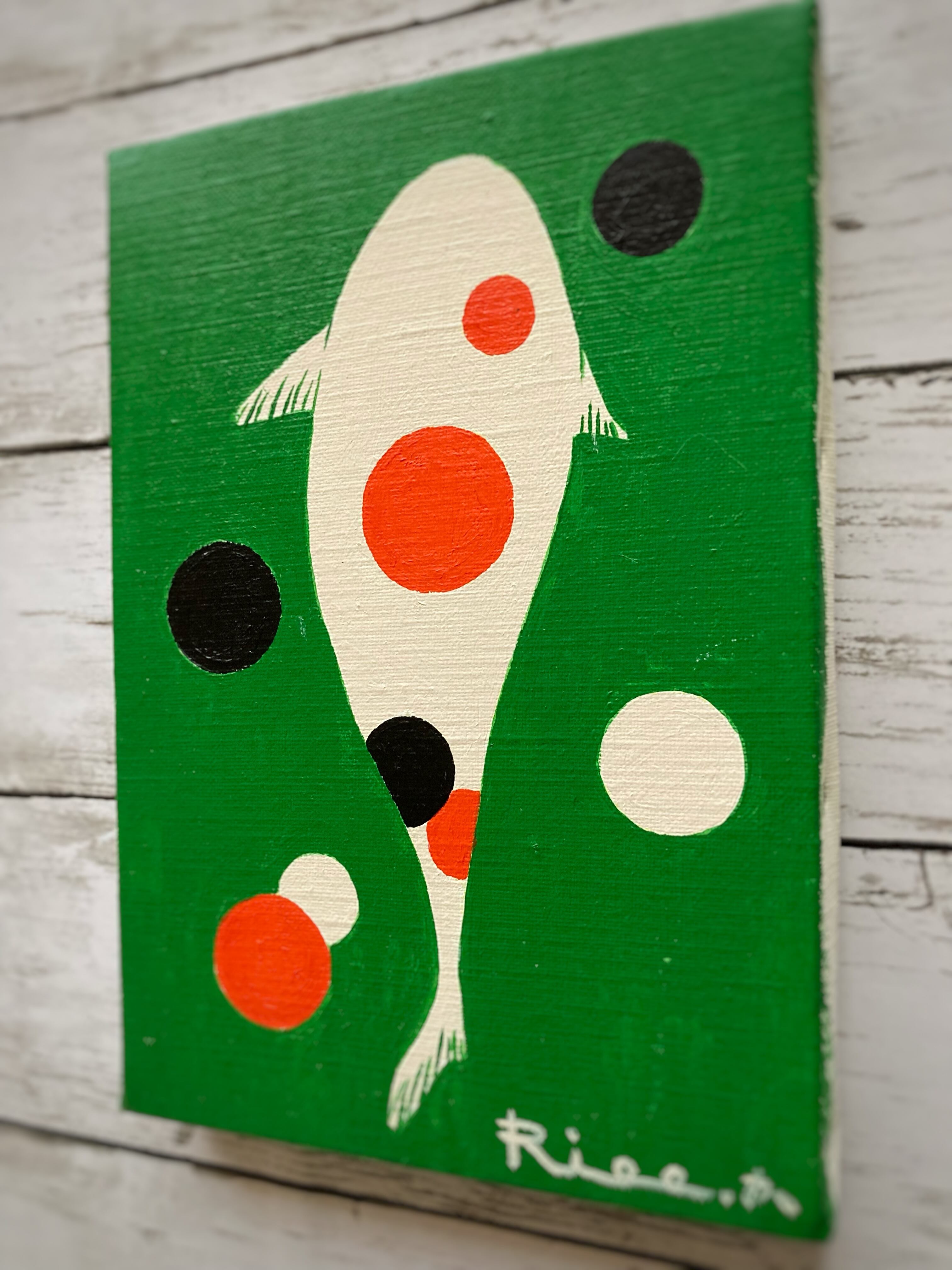 錦鯉 鯉 水玉 レトロ 絵 アート イラスト デザイン 絵画 原画 キャンバス インテリア