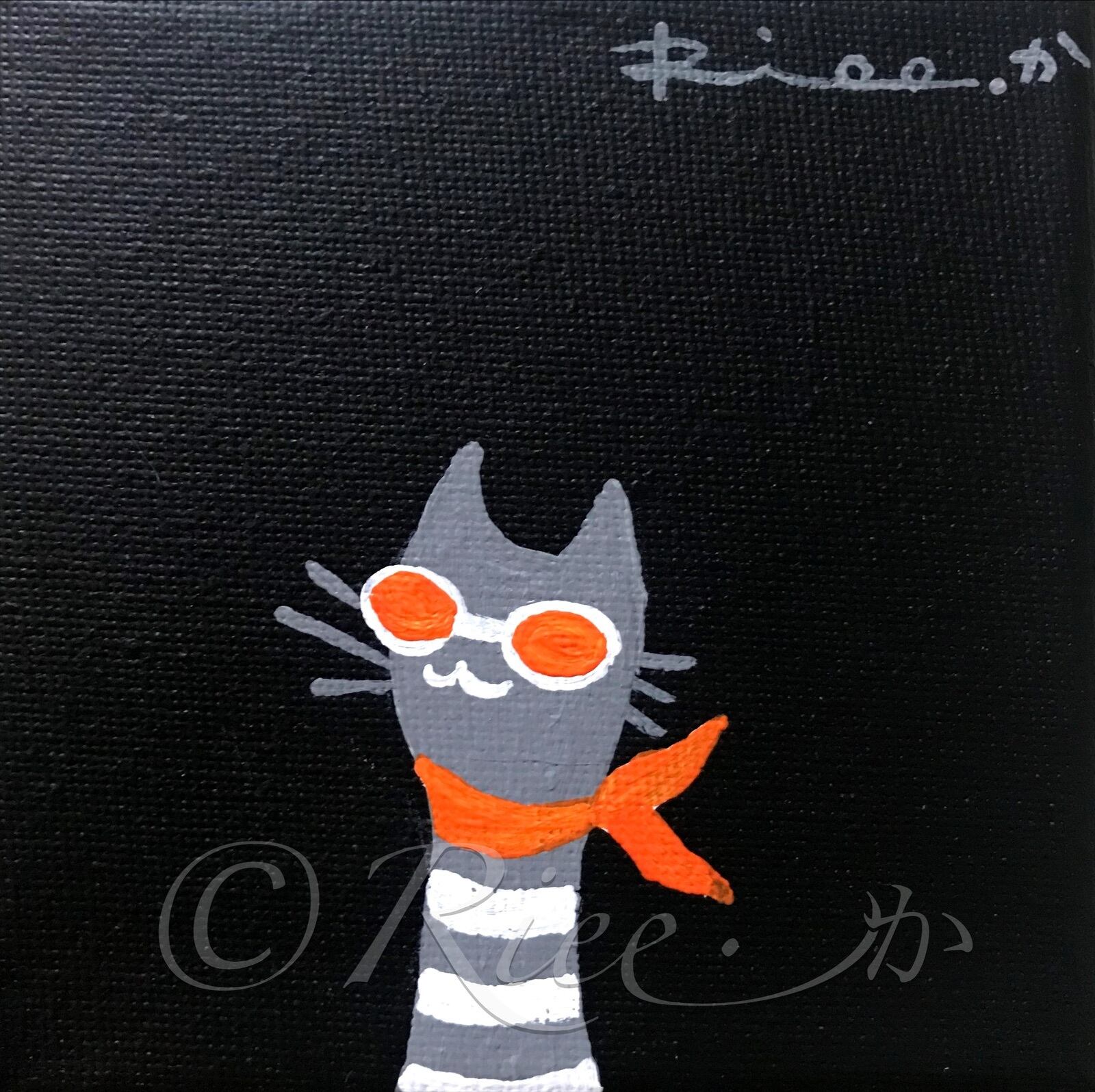 猫 原画 絵 イラスト アート 絵画 ミニキャンバス