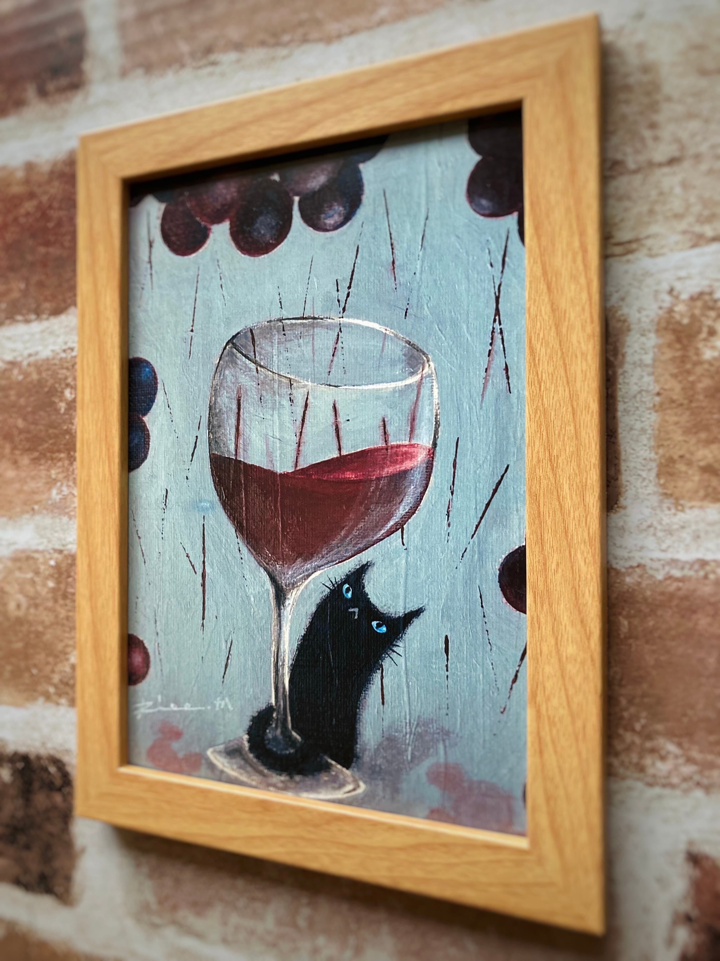 ワイン 黒猫 猫 雨 絵 アート イラスト 絵画 プリント 印刷物 複製画 アートポスター ポスター インテリア