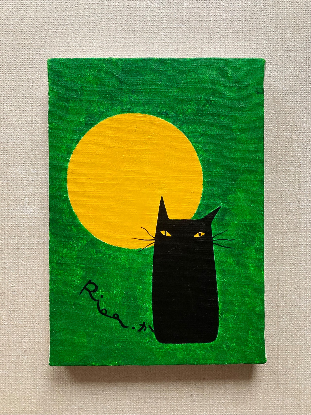 絵 イラスト アート 猫 黒猫 月 満月 原画 絵画 インテリア
