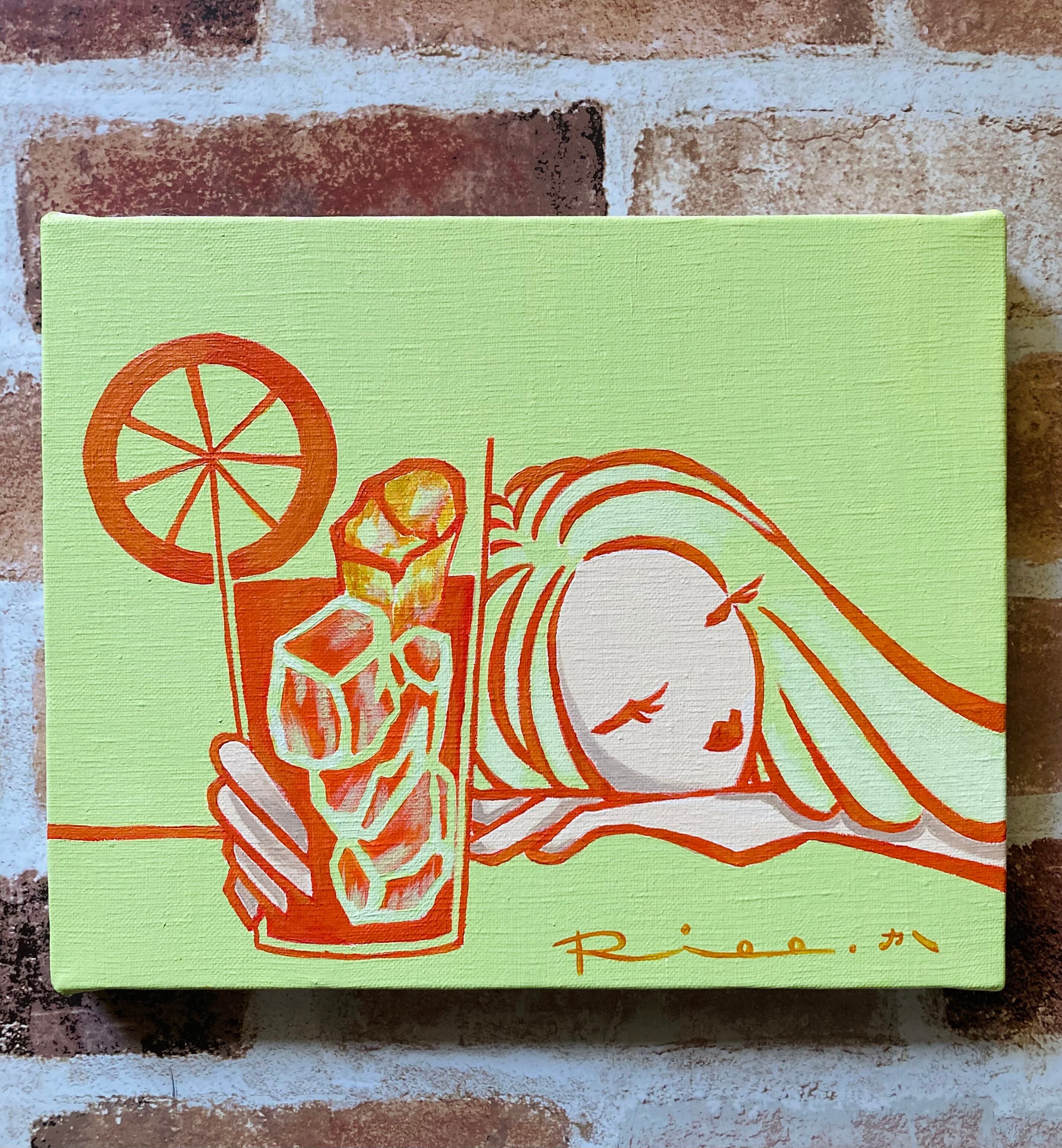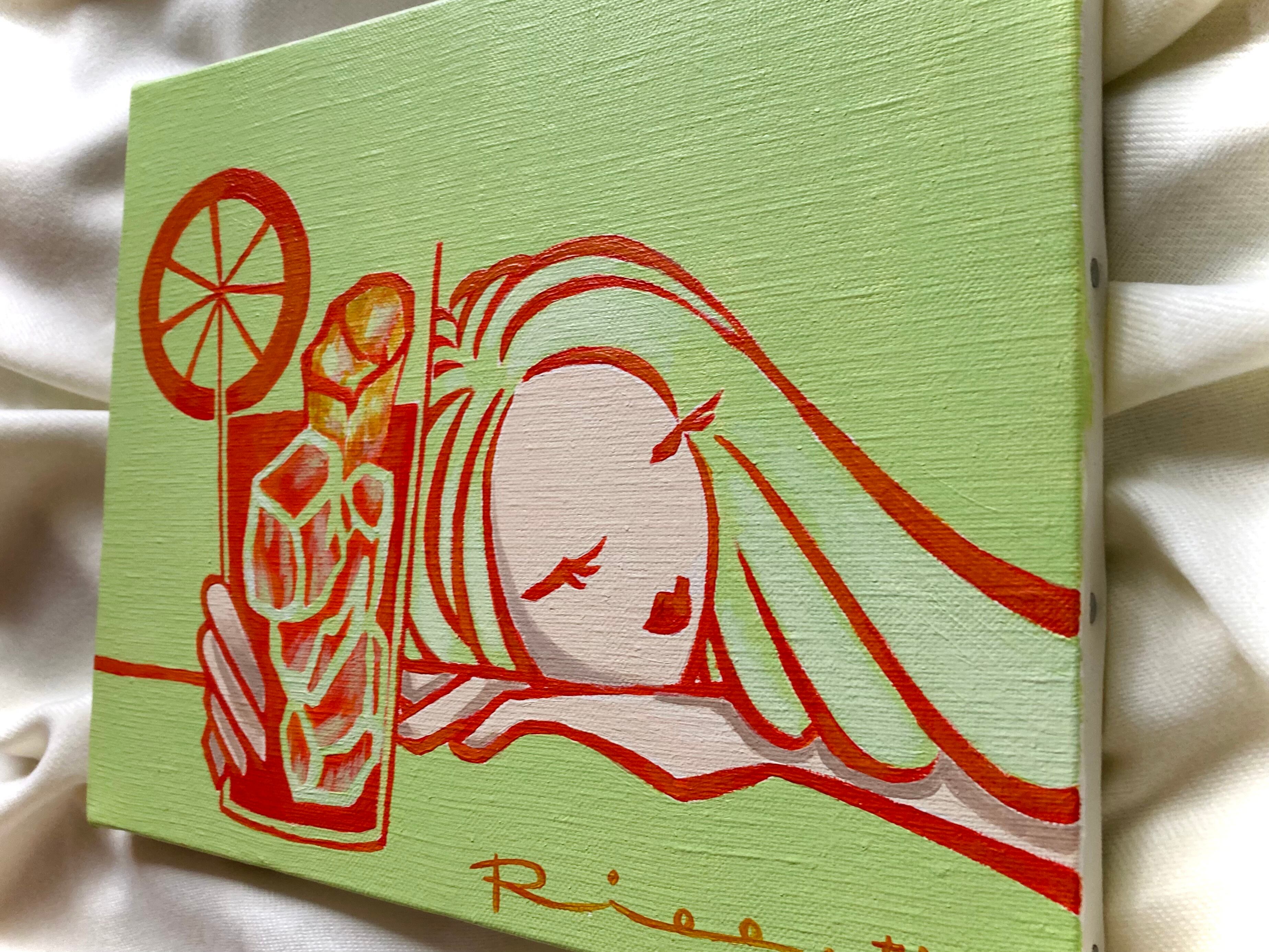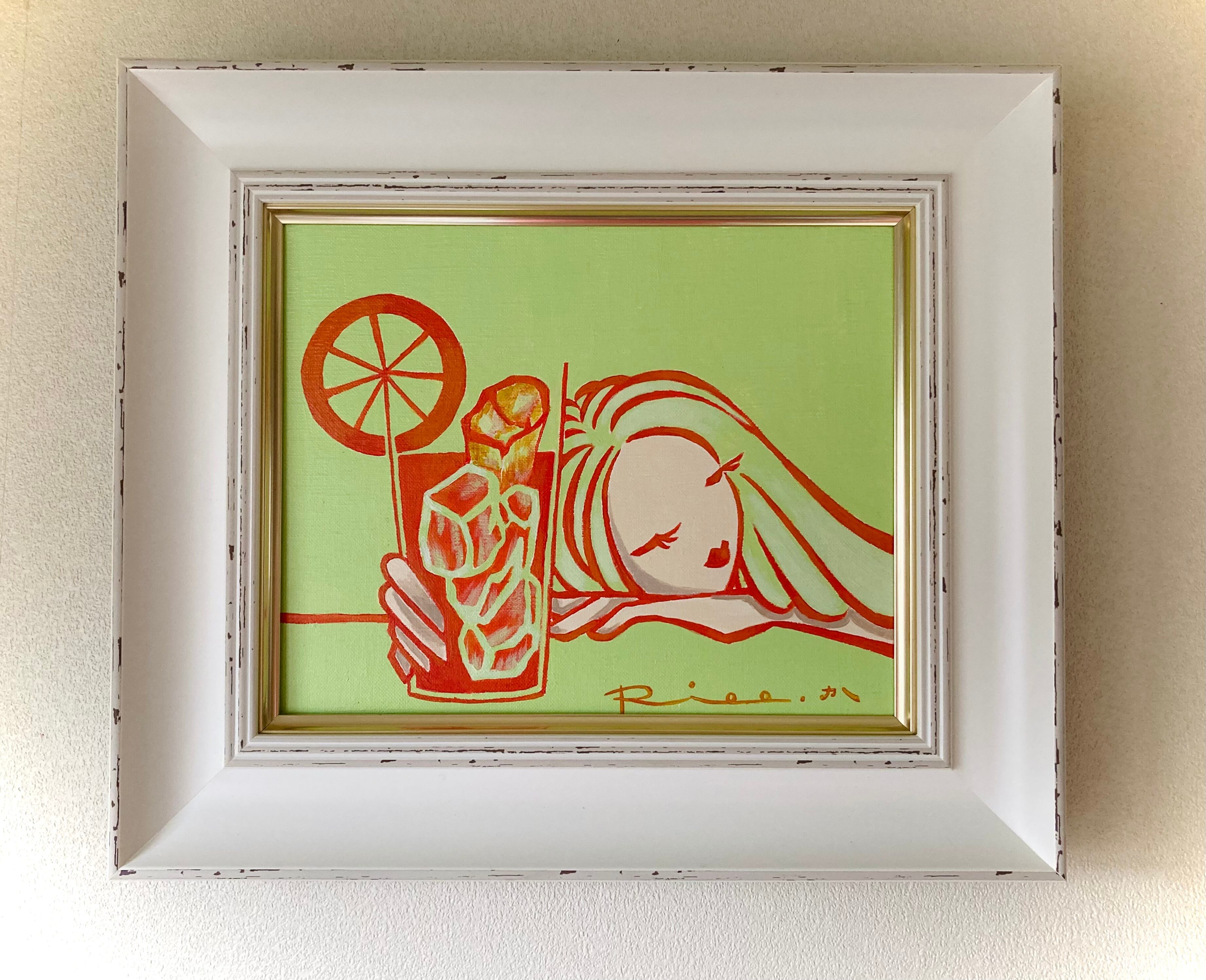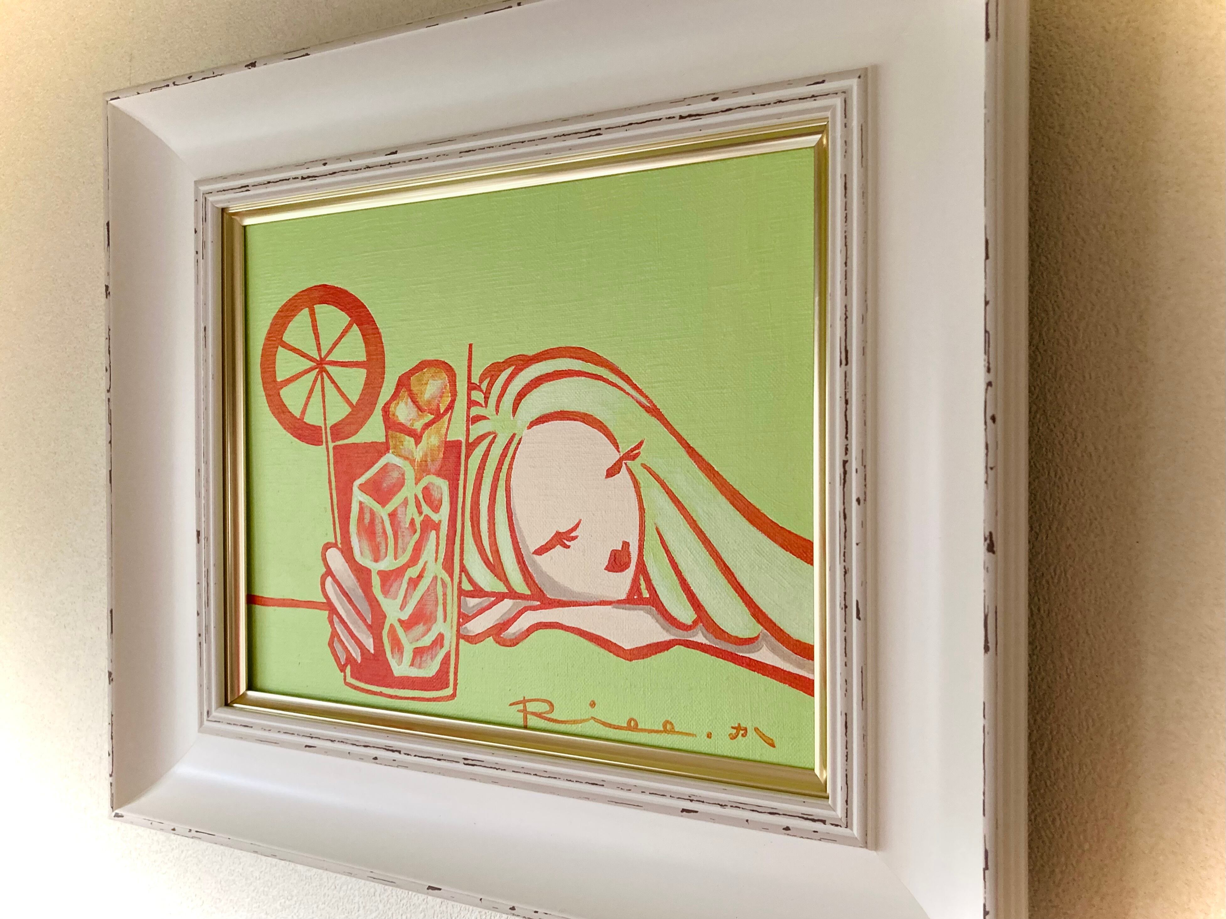 オレンジ カクテル オレンジジュース 女性画 ミュージックジャケット 原画 キャンバス 絵 絵画 アート イラスト デザイン インテリア