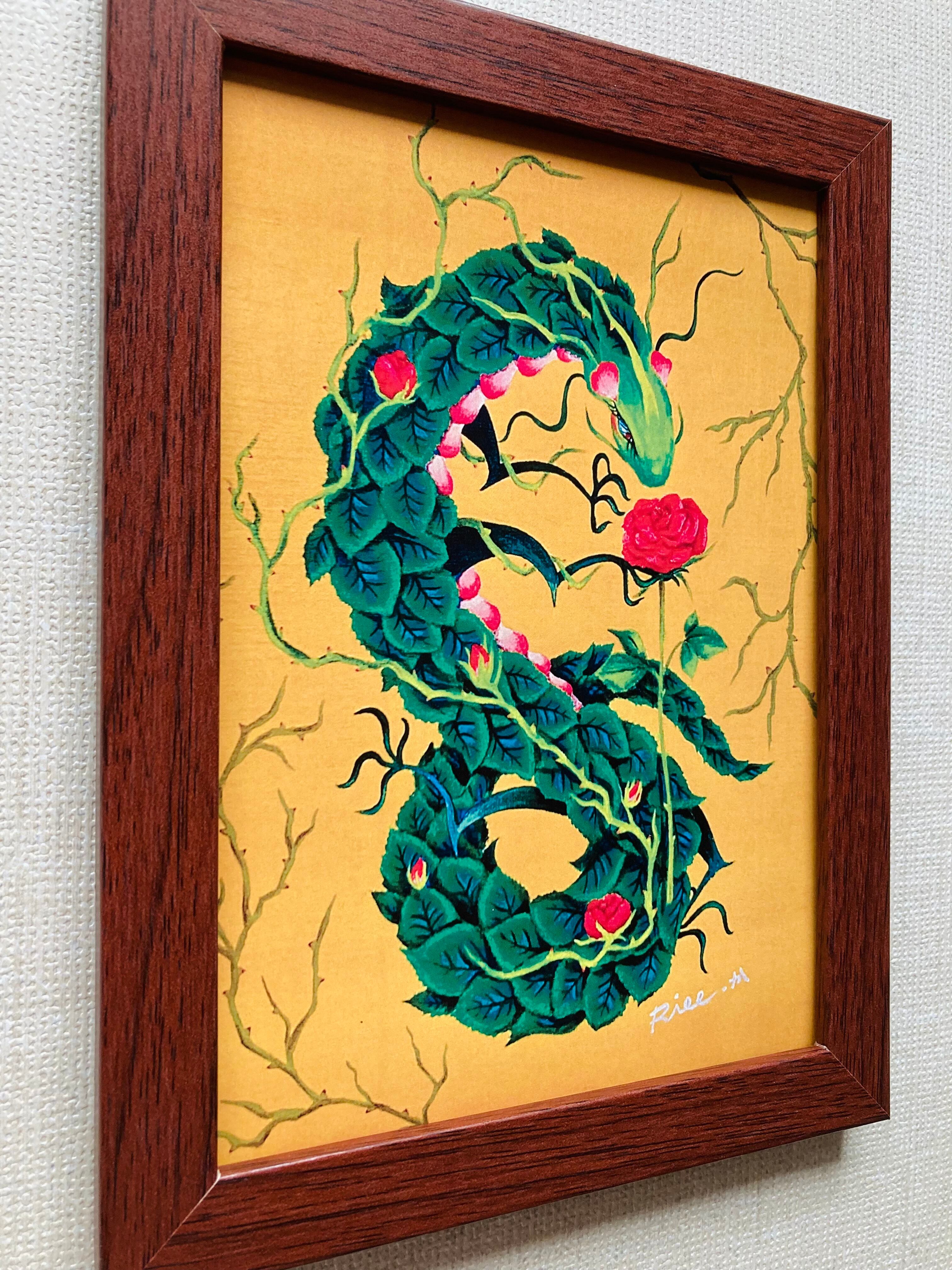 龍 薔薇 花 絵 アート イラスト 絵画 プリント 印刷物 開運 願望成就 インテリア