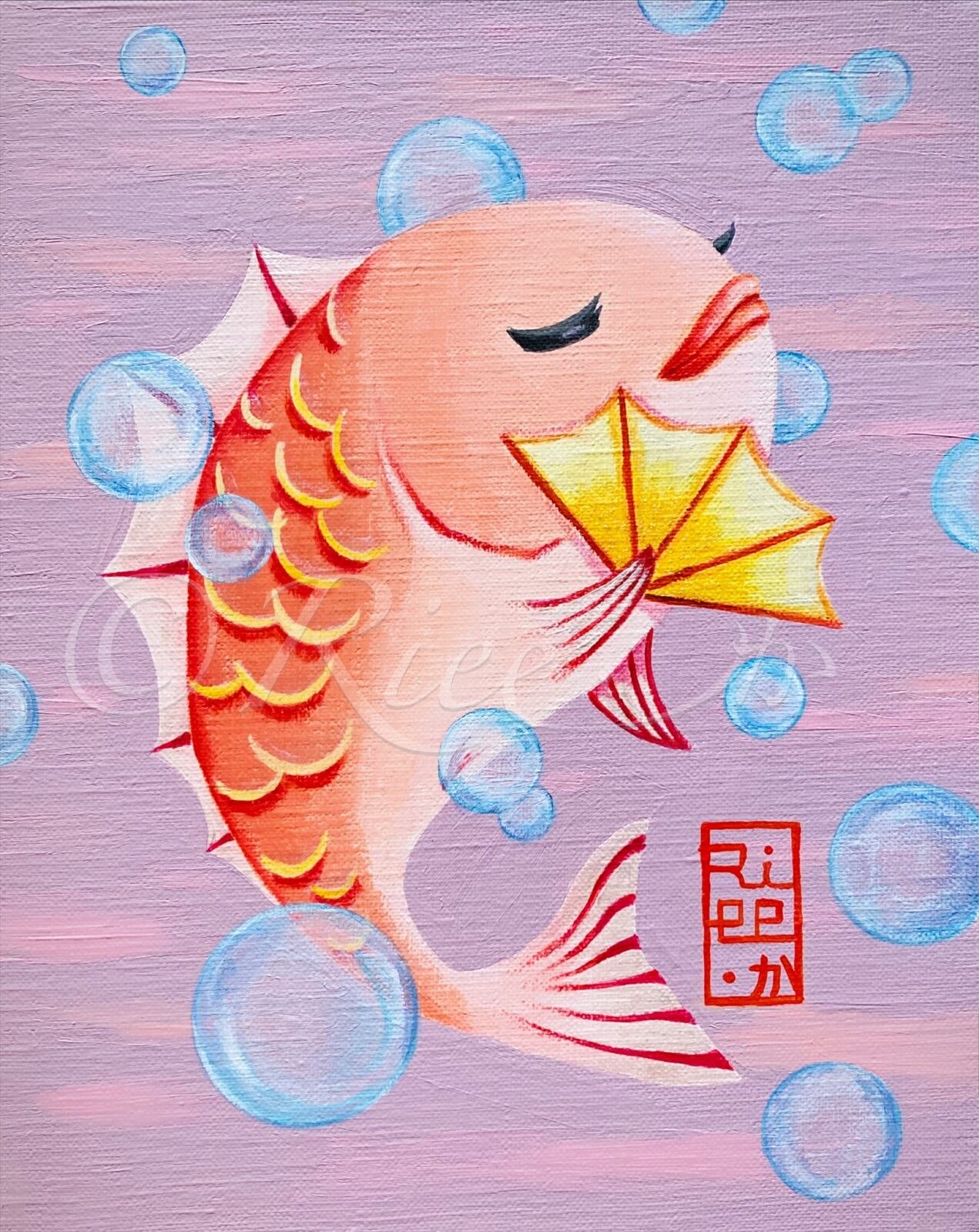 女性・猫・錦鯉・龍を主に描く。頭にパッと浮かんできたものや夢の中で描いていた絵を記憶し、それを出来る限り忠実に描くスタイル。