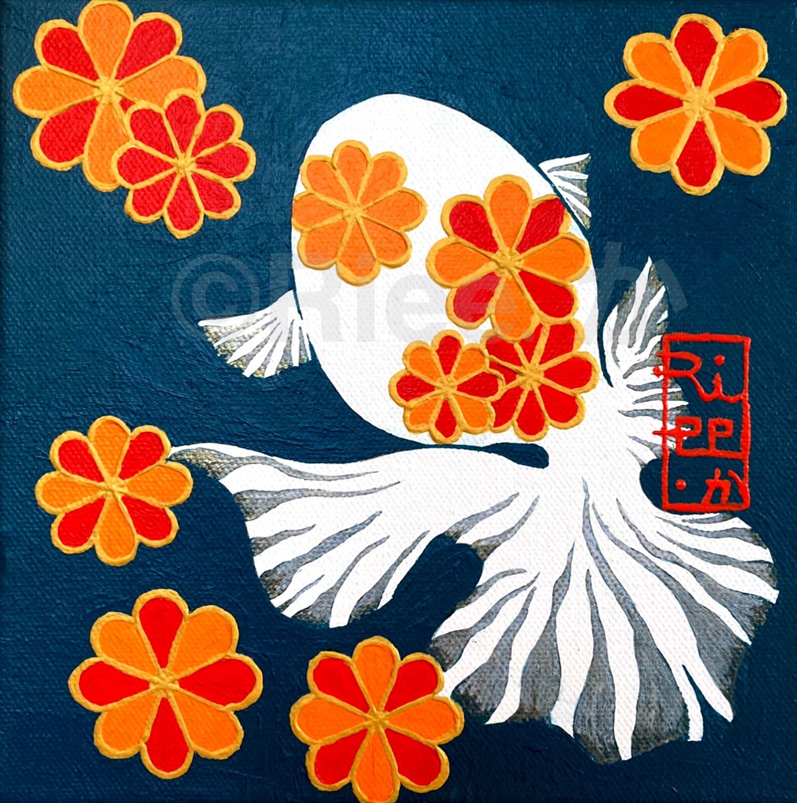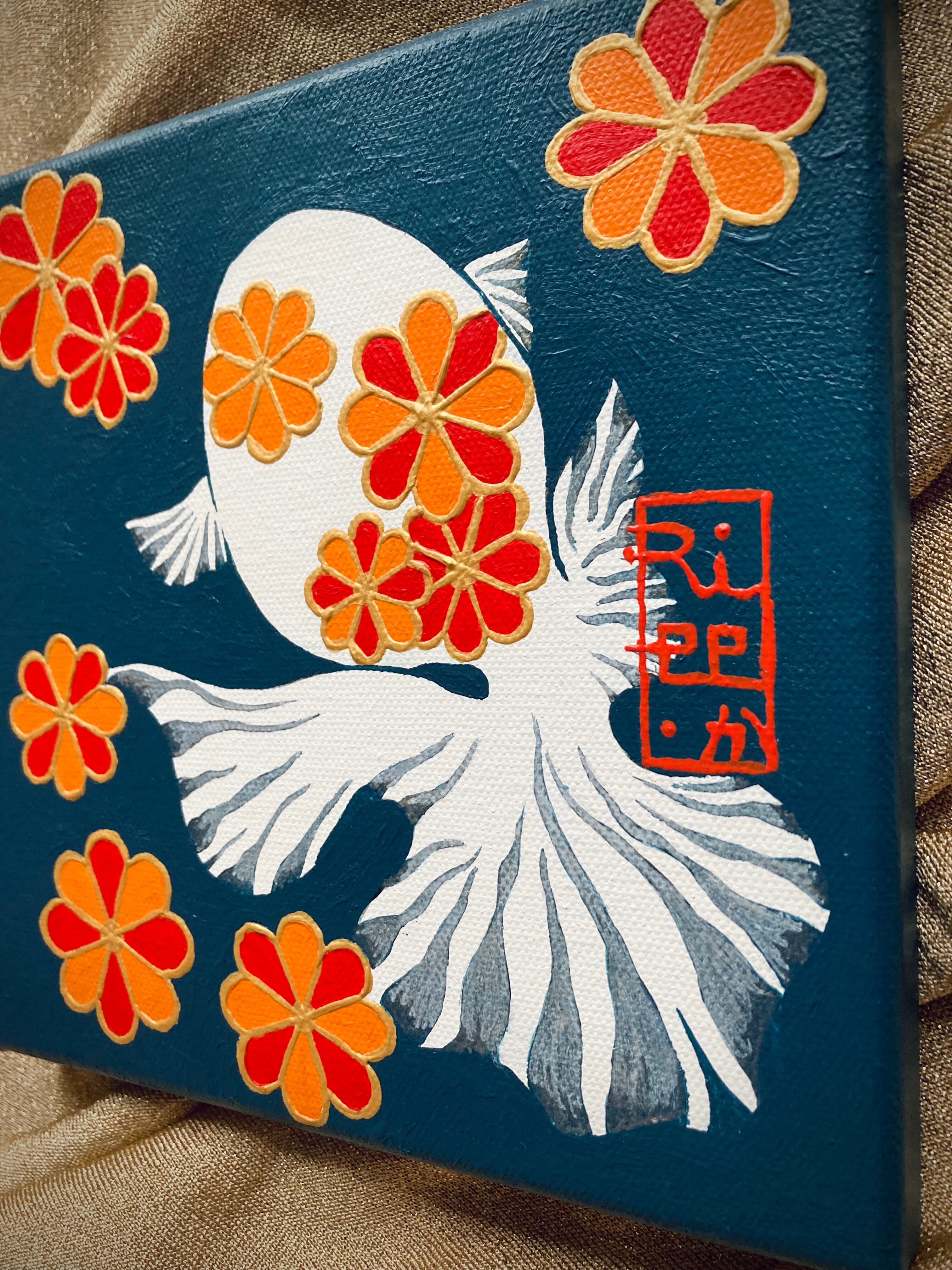 金魚 魚 菊 和 日本 絵 絵画 アート イラスト デザイン 原画 キャンバス インテリア