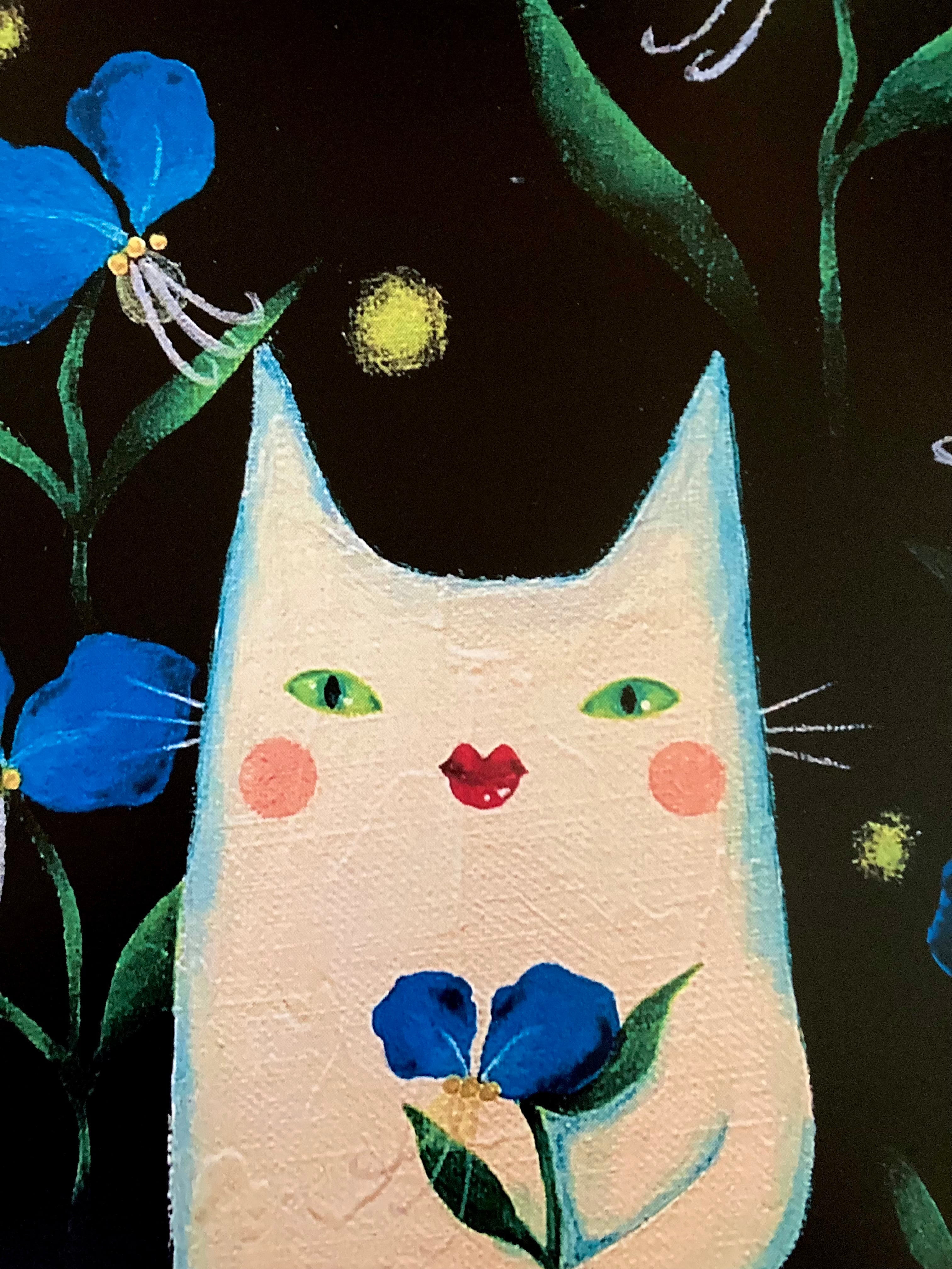 露草のブルーも効いてますが、お花猫さんのまっすぐな表情をA4サイズで楽しんでいただけます。