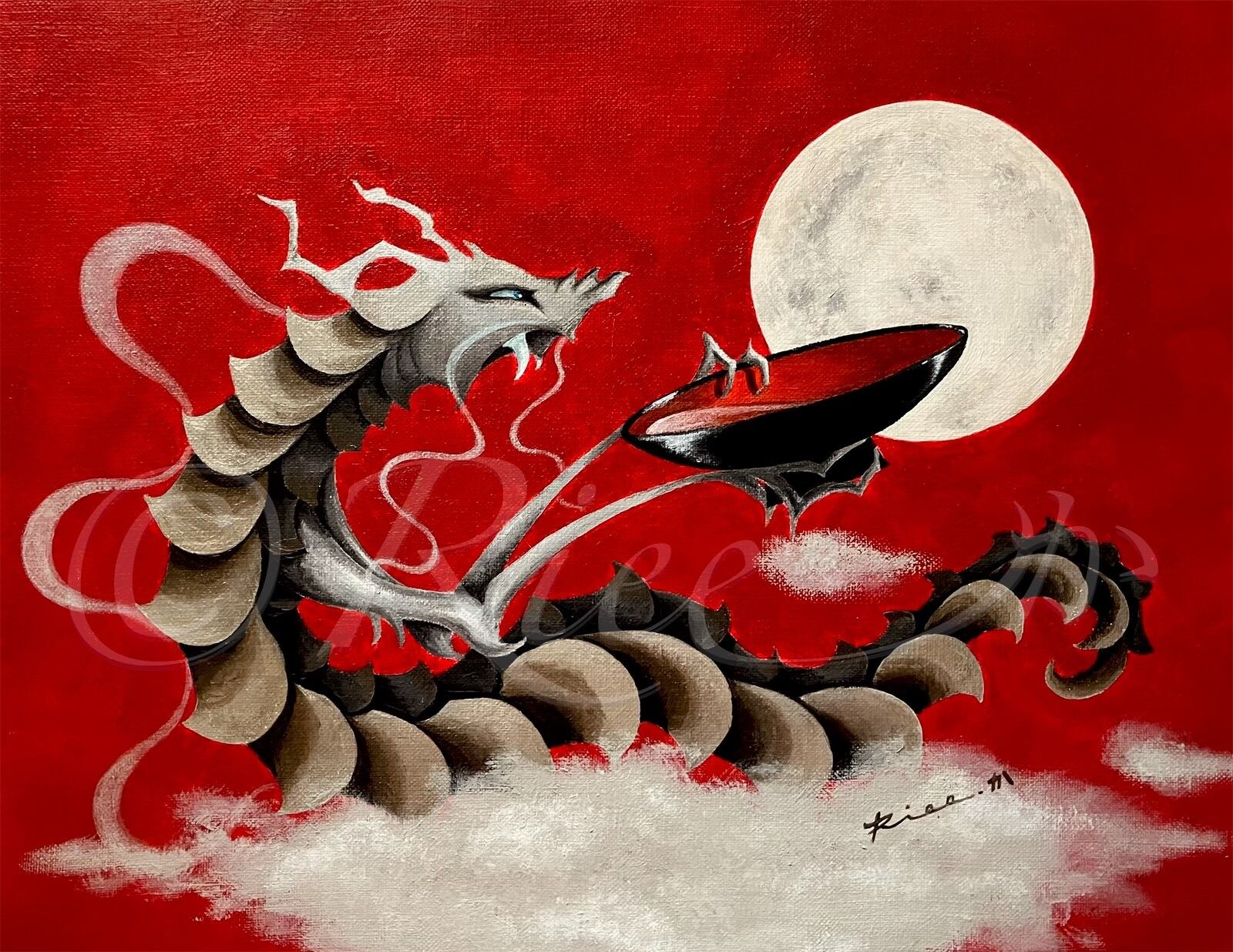 龍 満月 月 銀龍 絵 アート イラスト 絵画 プリント 印刷物 開運 ドラゴン アートポスター インテリア スピリチュアル