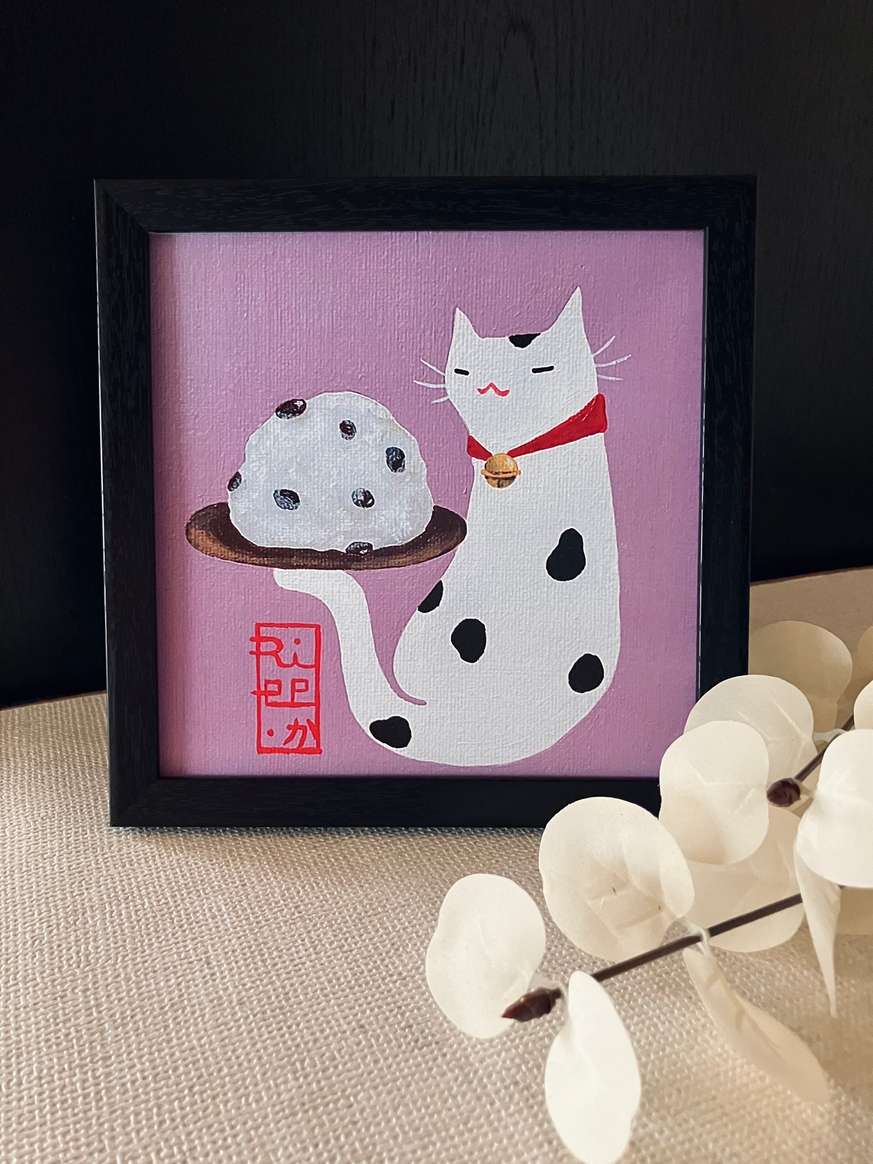 猫 ぶち猫 大福 和菓子 アート 絵画 イラスト かわいい 日本 複製画 アートポスター インテリア プレゼント 贈り物